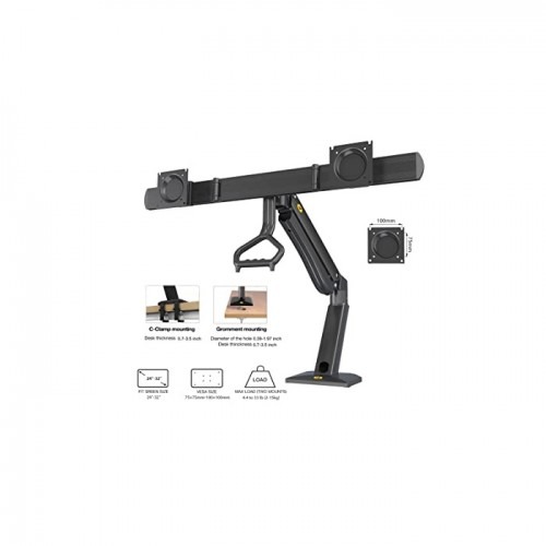 The North Bayou NB32 Dual Monitor Desk Stand with Hand Lever is a premium gas spring desk mount designed to support two monitors ranging from 24″ to 32″ each. With a robust weight capacity of up to 33 lbs (15 kg) total, it offers full-motion adjustability, allowing for tilt, swivel, rotation, and height adjustments.