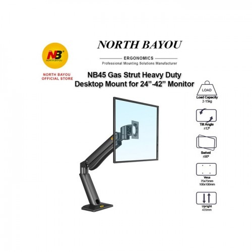 The North Bayou NB45 Monitor Desk Stand is a versatile and robust gas spring desk mount designed to support monitors ranging from 17″ to 32″. With a weight capacity of up to 15 kg (33 lbs), it offers full-motion adjustability, allowing for tilt, swivel, and rotation to achieve optimal viewing angles. The sleek aluminum alloy construction ensures durability and a modern aesthetic, making it an excellent choice for both home and office setups.