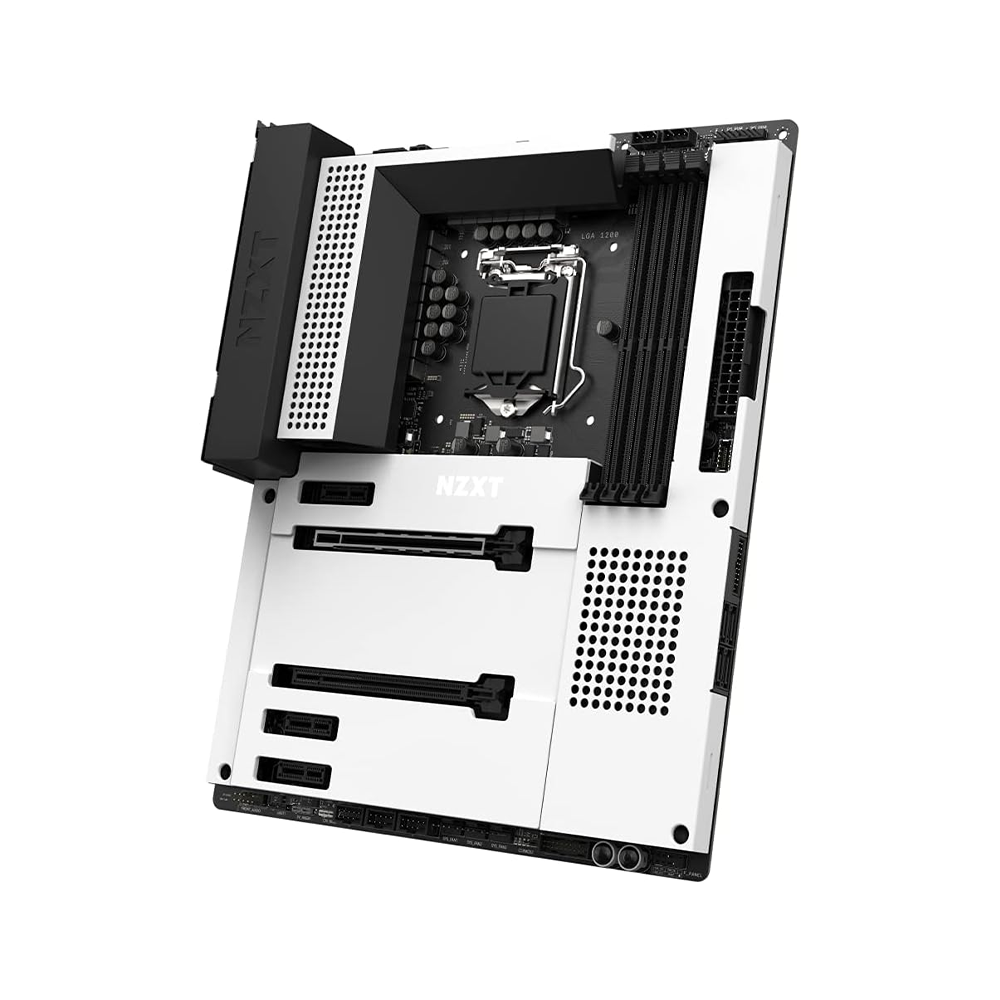 The NZXT N7 Z590 Motherboard delivers elegant design and smart functionality for Intel 11th Gen processors. Featuring integrated RGB and fan controls powered by NZXT CAM, it offers a seamless and intuitive setup experience. With its matte white metal cover, built-in WiFi 6E, and an integrated rear I/O shield, the N7 Z590 combines performance, aesthetics, and user-friendly installation — perfect for clean, modern PC builds.