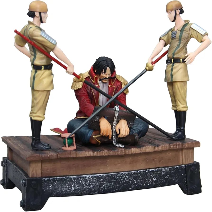 The One Piece – Gol D. Roger’s Execution Scene Figure is a detailed collectible figure capturing the iconic moment from One Piece when Gol D. Roger, the Pirate King, faces his execution. Designed for anime and manga enthusiasts, this statue showcases Roger seated on the execution platform, flanked by two Marine soldiers, wearing his signature red coat. Made from high-quality PVC rubber, it combines craftsmanship with dramatic flair to bring this pivotal scene to life.