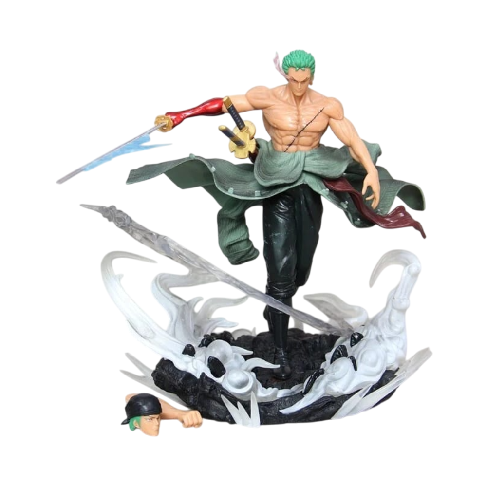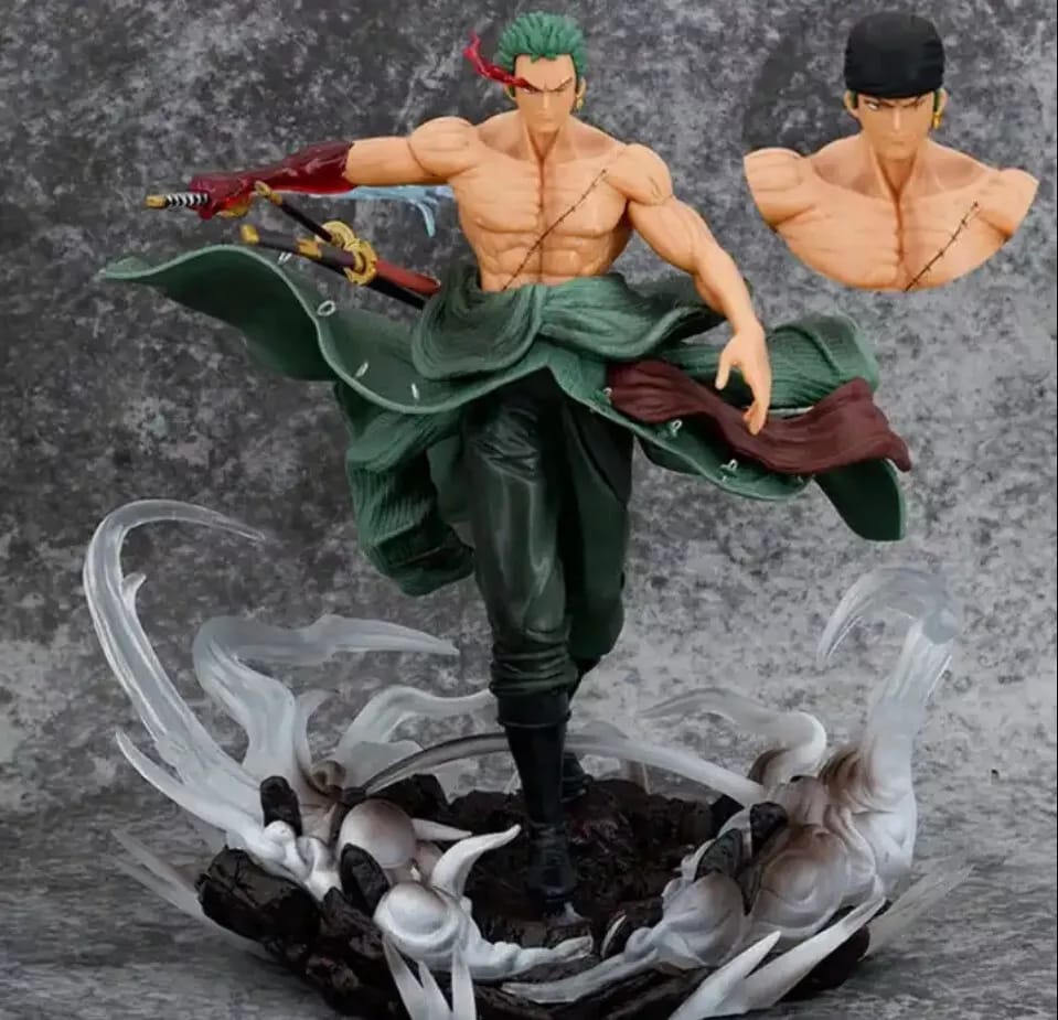 The One Piece – Roronoa Zoro Fighting Pose Figure is a detailed PVC collectible designed for fans of the legendary swordsman from One Piece. Standing approximately 30 cm tall, this figure captures Zoro’s fierce and determined expression, complemented by an alternate interchangeable head for dynamic display options. Made from durable PVC material, it features finely sculpted details and vibrant colors that bring the character to life — a must-have for anime enthusiasts and collectors alike.