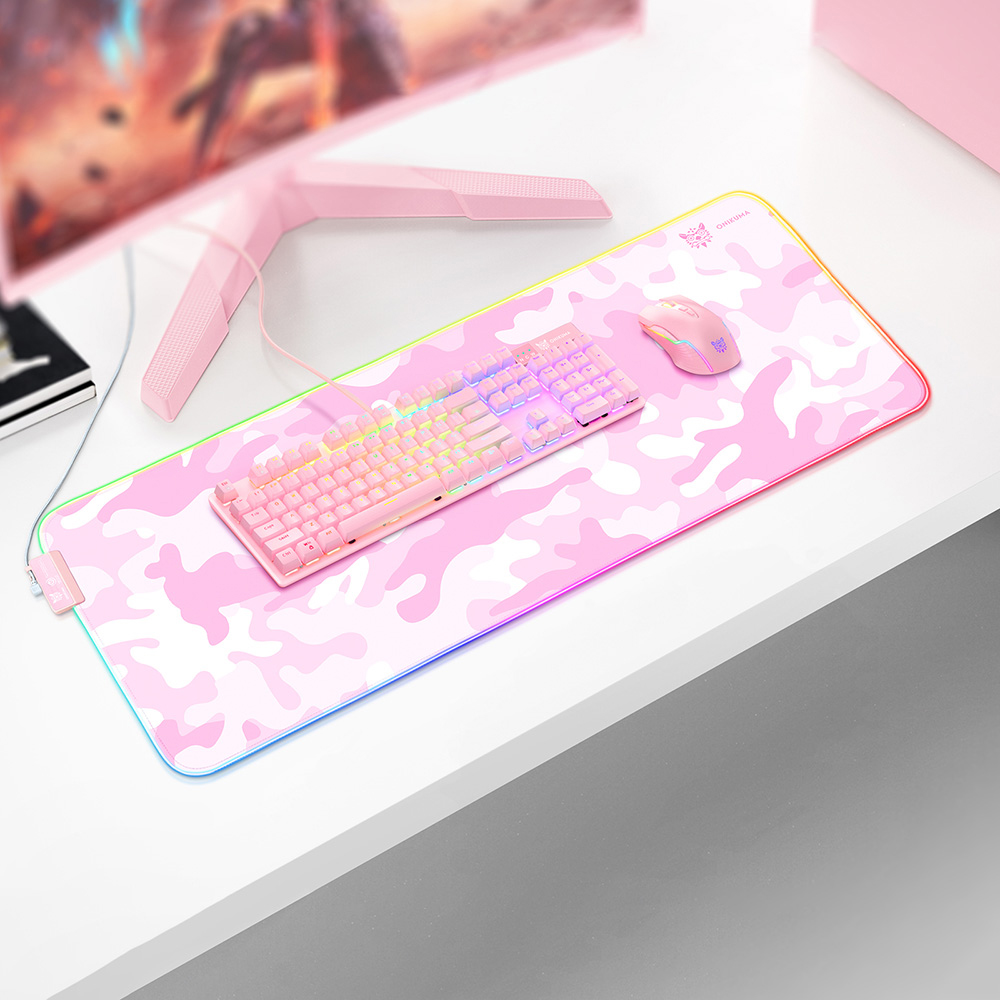 The Onikuma MP005 RGB Mousepad (Pink) delivers both precision and style to your gaming setup. Its smooth, high-quality surface ensures accurate and fluid mouse movements, while the vibrant RGB illumination enhances your gaming atmosphere with 12 selectable lighting effects. With a simple press of the built-in control button, you can cycle through your preferred modes to match your mood or gameplay style. The non-slip rubber base keeps the mousepad securely in place—even during fast-paced action—making it an ideal addition for gamers who value performance and aesthetics.