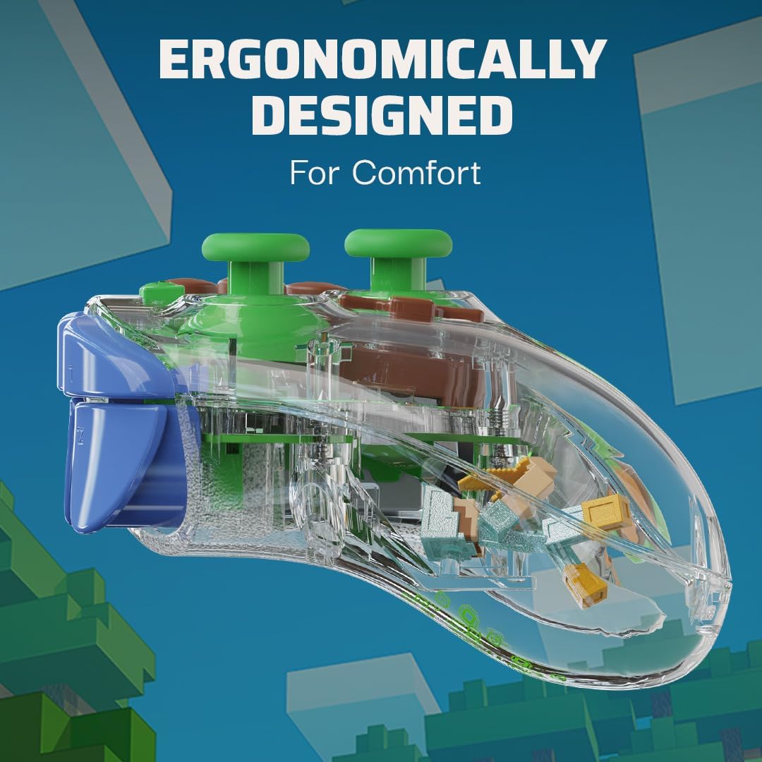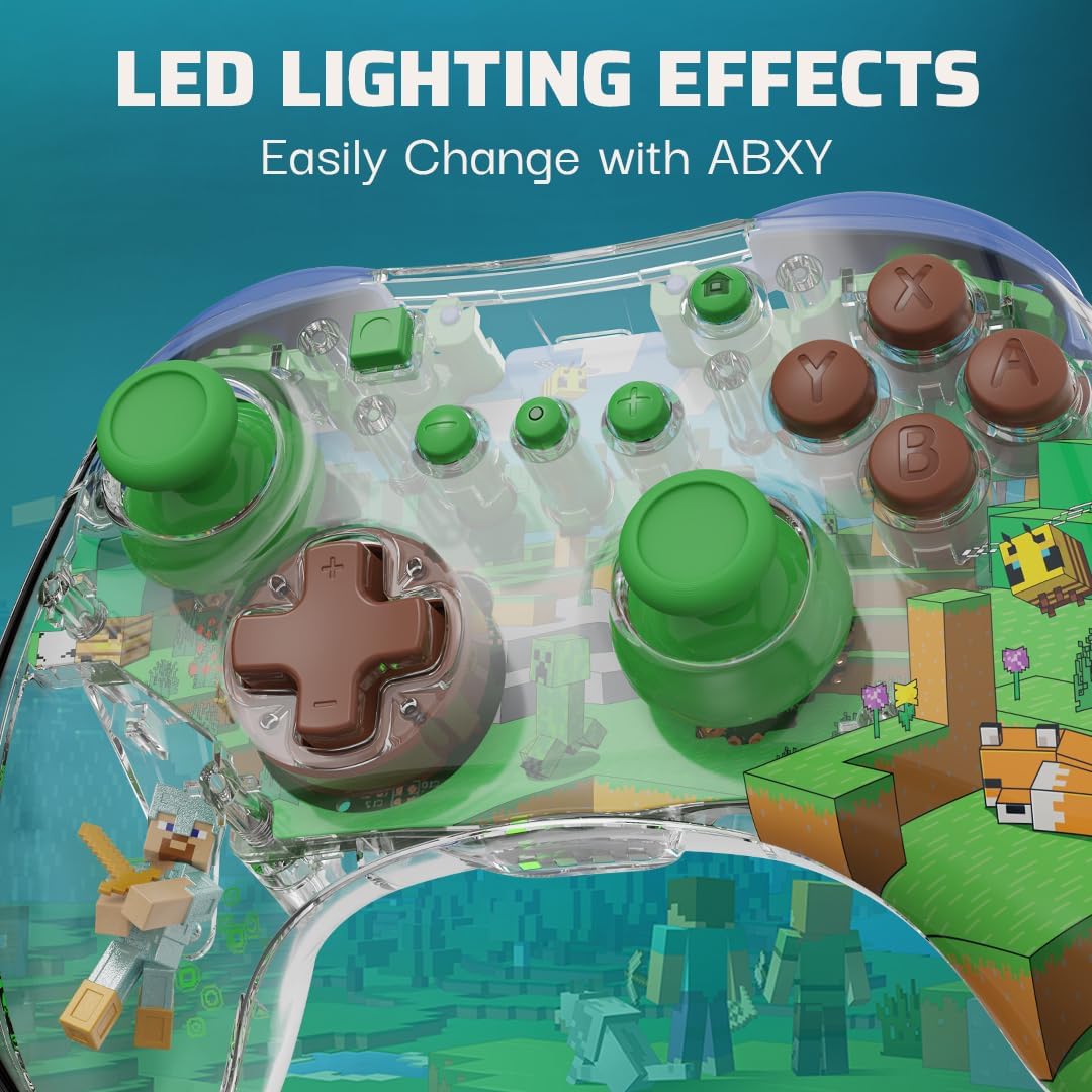 The Collectible Gamepad features a unique design, capturing iconic game scenes inside the grip with a multi-layered finish. Built for performance and comfort, it offers a rechargeable battery with a 30-foot wireless range. Personalize your gaming experience with customizable LED lighting effects, easily controlled via the ABXY buttons. Officially licensed by Nintendo and Mojang Studios, it’s the perfect blend of functionality and gaming nostalgia.