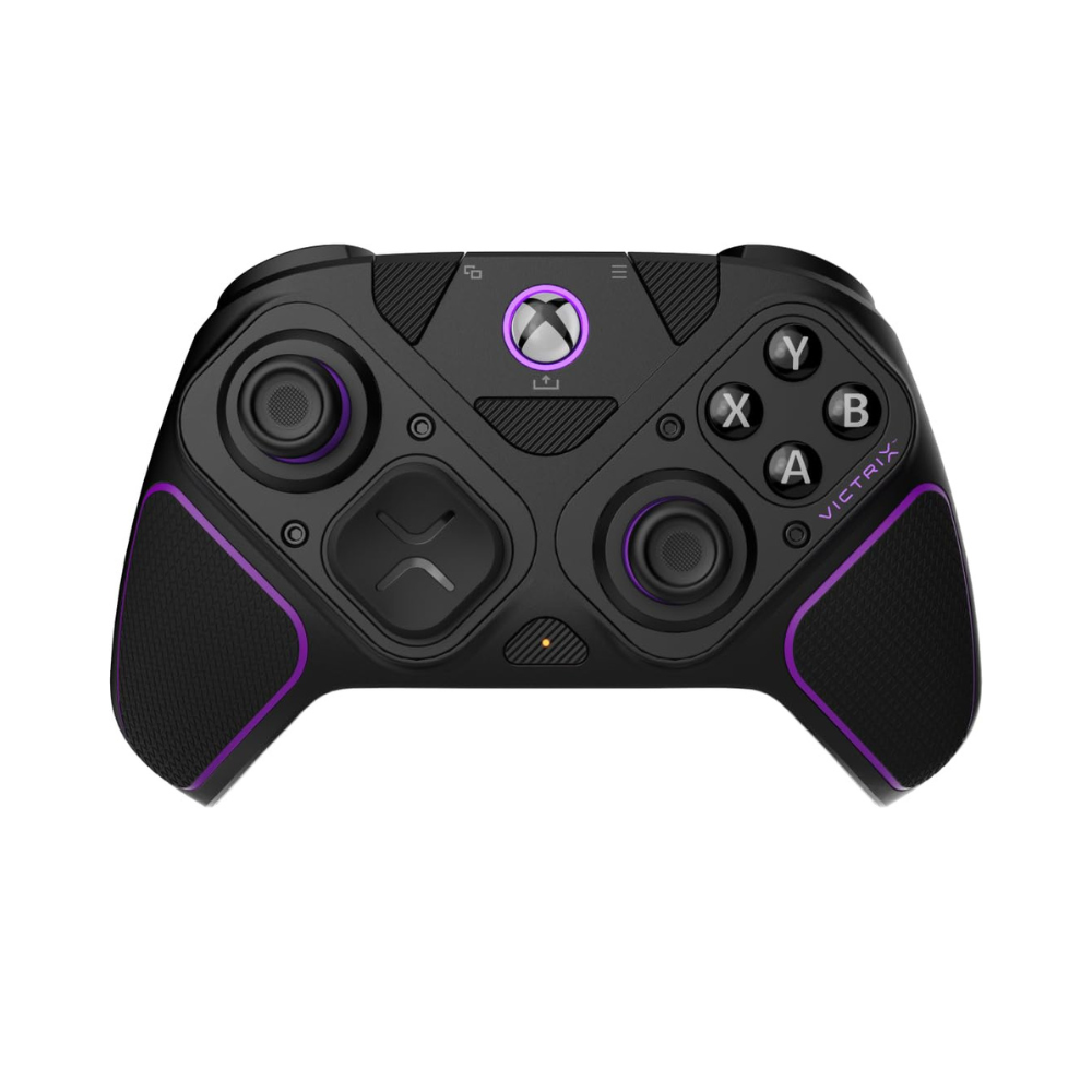 The PDP Victrix Pro BFG Wireless Gaming Controller (Black) is a high-performance, modular controller designed for Xbox Series X|S, Xbox One, and Windows PC. It offers ultra-low latency via USB dongle, wired and Bluetooth connectivity, and a customizable layout with interchangeable modules and sticks. Built-in Dolby Atmos audio provides immersive spatial sound, while Clutch Triggers™ enable adjustable trigger stops and hair-trigger mode. Four programmable back buttons and the Victrix Control Hub app let you remap every input for competitive play.