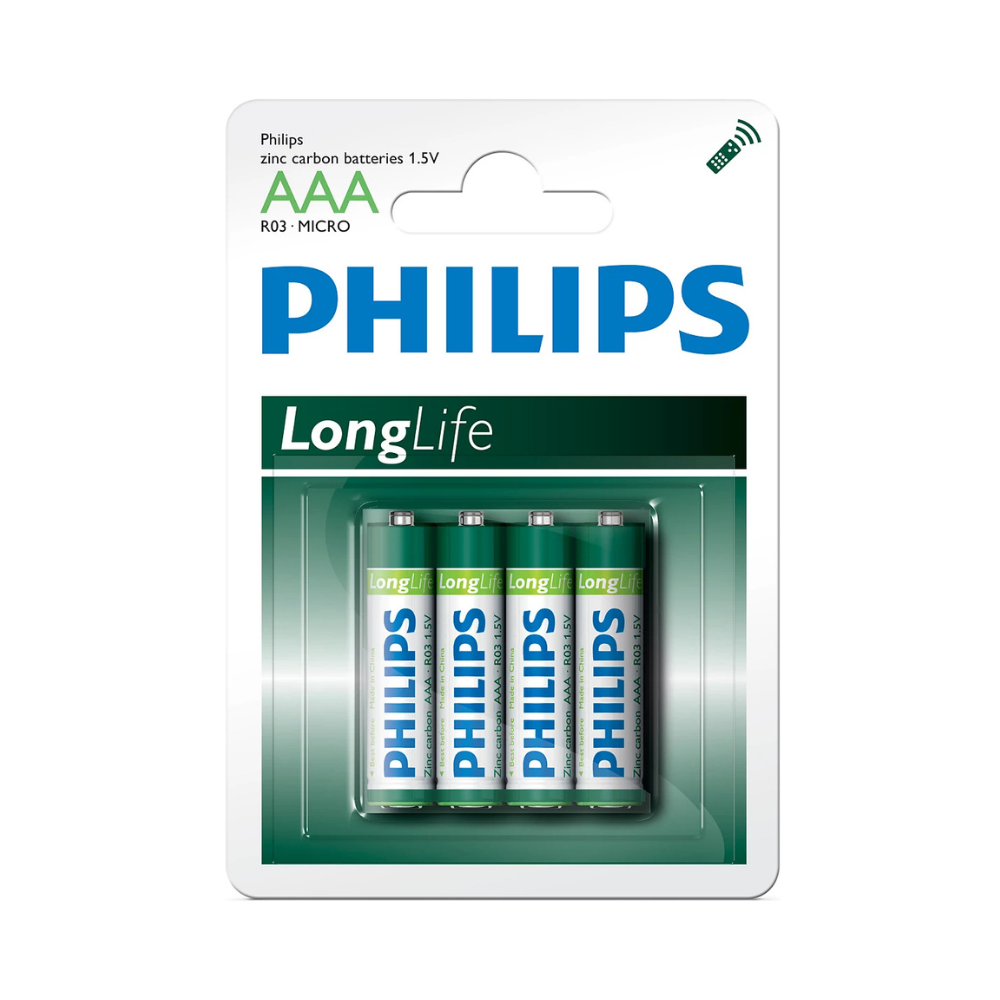 The Philips Extra Zinc Chloride AAA Batteries are reliable single-use power cells designed for low-drain devices such as remote controls, clocks, calculators, small toys, and similar electronics. Manufactured using high-quality zinc-chloride technology, these 1.5 V cells offer dependable performance and long shelf life. They are free from harmful heavy metals like cadmium and mercury, making them a safer and more environmentally conscious choice compared with some older battery chemistries. The compact AAA size ensures compatibility with a wide range of household gadgets.
