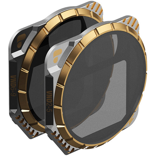 The PolarPro Variable ND Filter Pack for DJI Mavic 3/Mavic 3 Cine allows you to easily adjust your drone’s exposure without the need to swap out filters. This 2-pack includes two variable neutral density filters: one that reduces light by 2 to 5 stops and the other by 6 to 9 stops. With the **laser-etched adjustment ring**, you can precisely control the level of light filtering, making it perfect for any lighting condition — from cloudy days to bright, sunny skies. Whether you’re shooting in low light or capturing long exposures in bright conditions, this filter pack delivers exceptional results. Crafted with **CinemaSeries Glass**, the filters provide excellent color neutrality and perfect light transmission, ensuring your footage looks cinematic. A **filter hard case** is included to keep your filters safe when not in use.