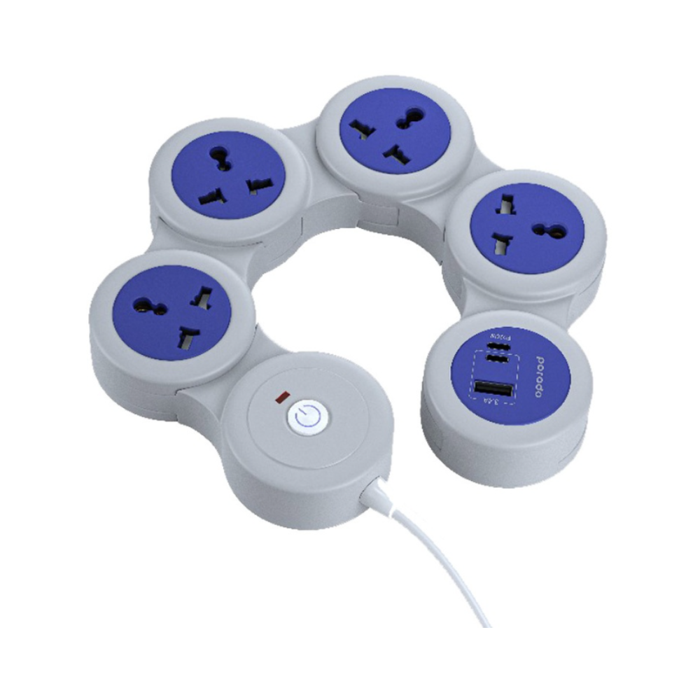 The PORODO Multisocket Strip 2500W (PD-FWCH020-GY) is a versatile power solution designed to provide reliable electricity for a wide range of devices. With a rated power of 2500W and a 10A current capacity, it can safely handle multiple electronics simultaneously. Its universal sockets support EU, UK, US, and AU plugs, making it ideal for international travelers or households with diverse electronic devices.