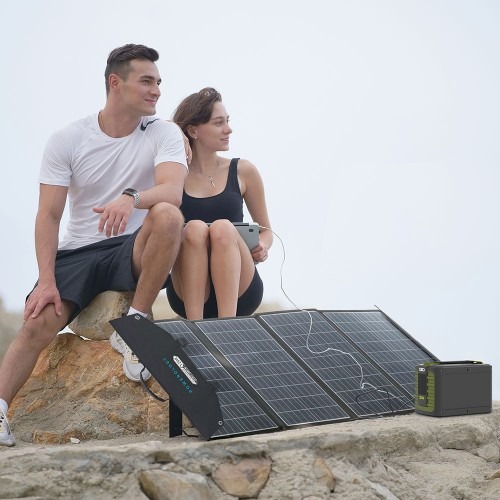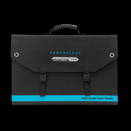 The Powerology 120W Universal Folding Solar Panel is a high-performance, portable solar solution designed for outdoor enthusiasts, campers, and emergency preparedness. Featuring efficient monocrystalline cells, this panel delivers up to 120W of power, ensuring rapid charging for various devices. Its foldable design and included zippered pouch make transportation and storage convenient. The panel offers multiple output options, including a 45W PD USB-C port, a QC3.0 USB-A port, and a 120W Anderson port, providing versatile charging capabilities to suit different devices.