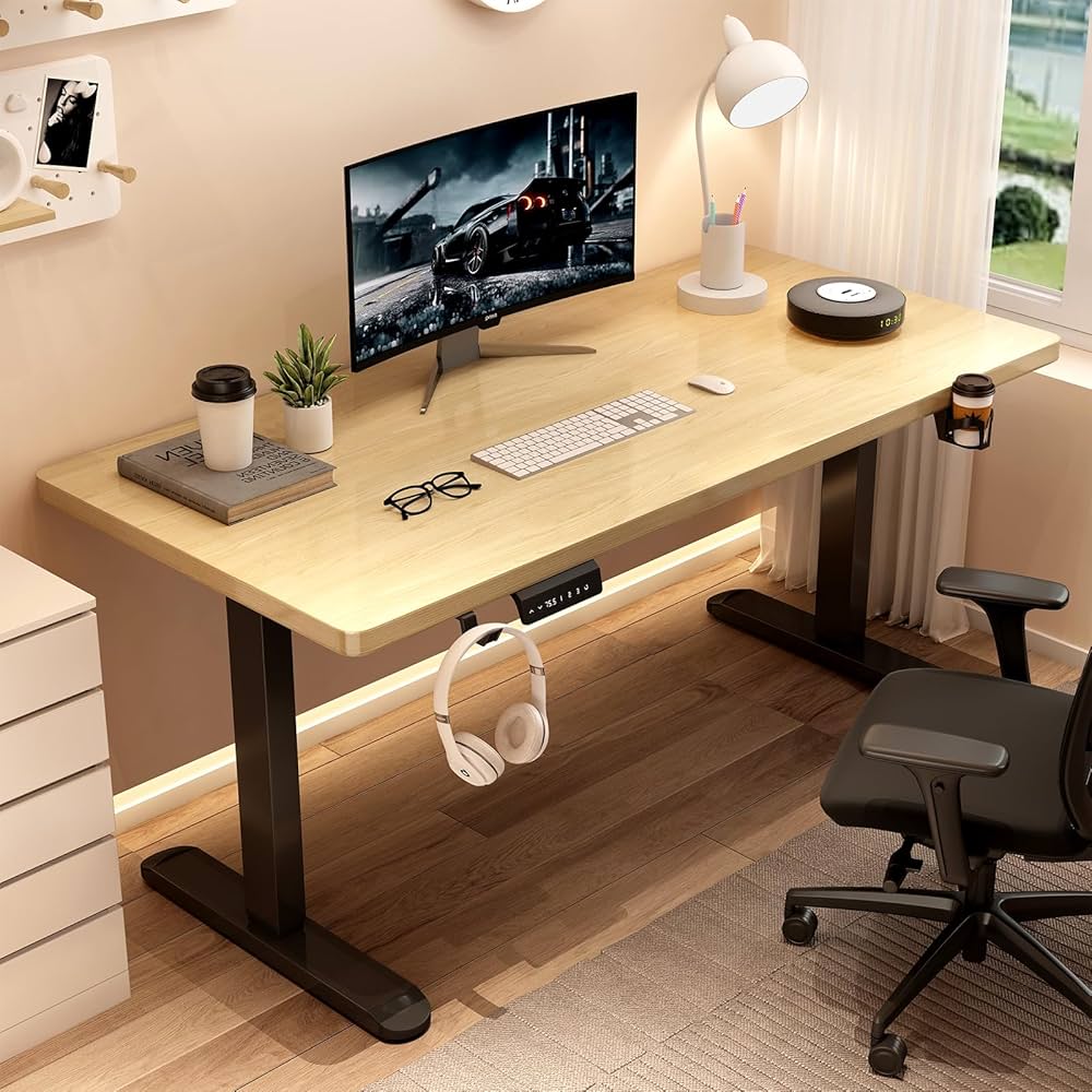 • ELECTRIC HEIGHT-ADJUSTABLE LIFTING SYSTEM: The standing desk has a reliable motor, supports height adjustment between 71.8cm-116.8cm, and operates with low noise (less than 45 decibels)