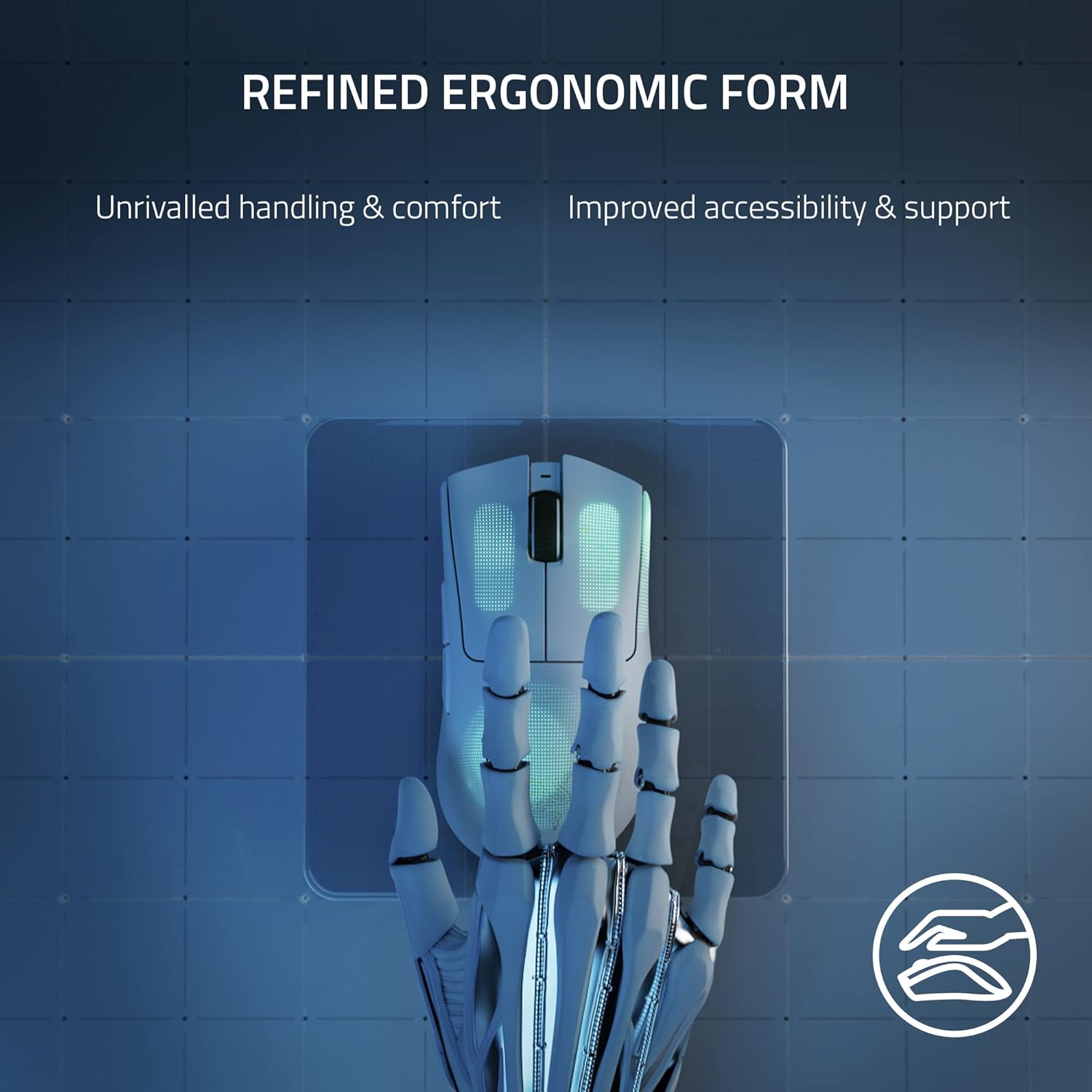The Razer DeathAdder V3 Pro Wireless Gaming Mouse is a lightweight, right‑handed ergonomic mouse built for high-performance play. It features the Focus Pro 30K optical sensor for ultra-precise tracking, 5 programmable buttons, and Gen‑3 optical switches rated for 90 million clicks. Connectivity options include HyperSpeed 2.4 GHz wireless and USB‑C wired charging. With up to 90 hours of battery life, it’s designed for long sessions without frequent recharging. The mouse weighs just 63 g, ensuring a nimble feel, and its ergonomic form is refined for comfort during intense gameplay.