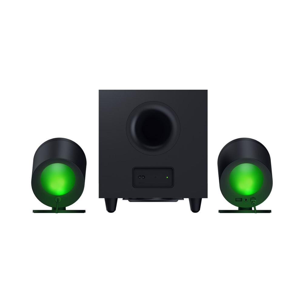 The **Razer Nommo V2 Pro** is a premium 2.1 gaming speaker system designed to deliver immersive, positional audio with powerful bass and a slick, clean setup. It features a pair of full-range drivers plus a wireless down-firing subwoofer, all wrapped in Razer’s Chroma RGB lighting and backed by **THX Spatial Audio** to give you rich, room-filling sound for gaming, movies, and music.