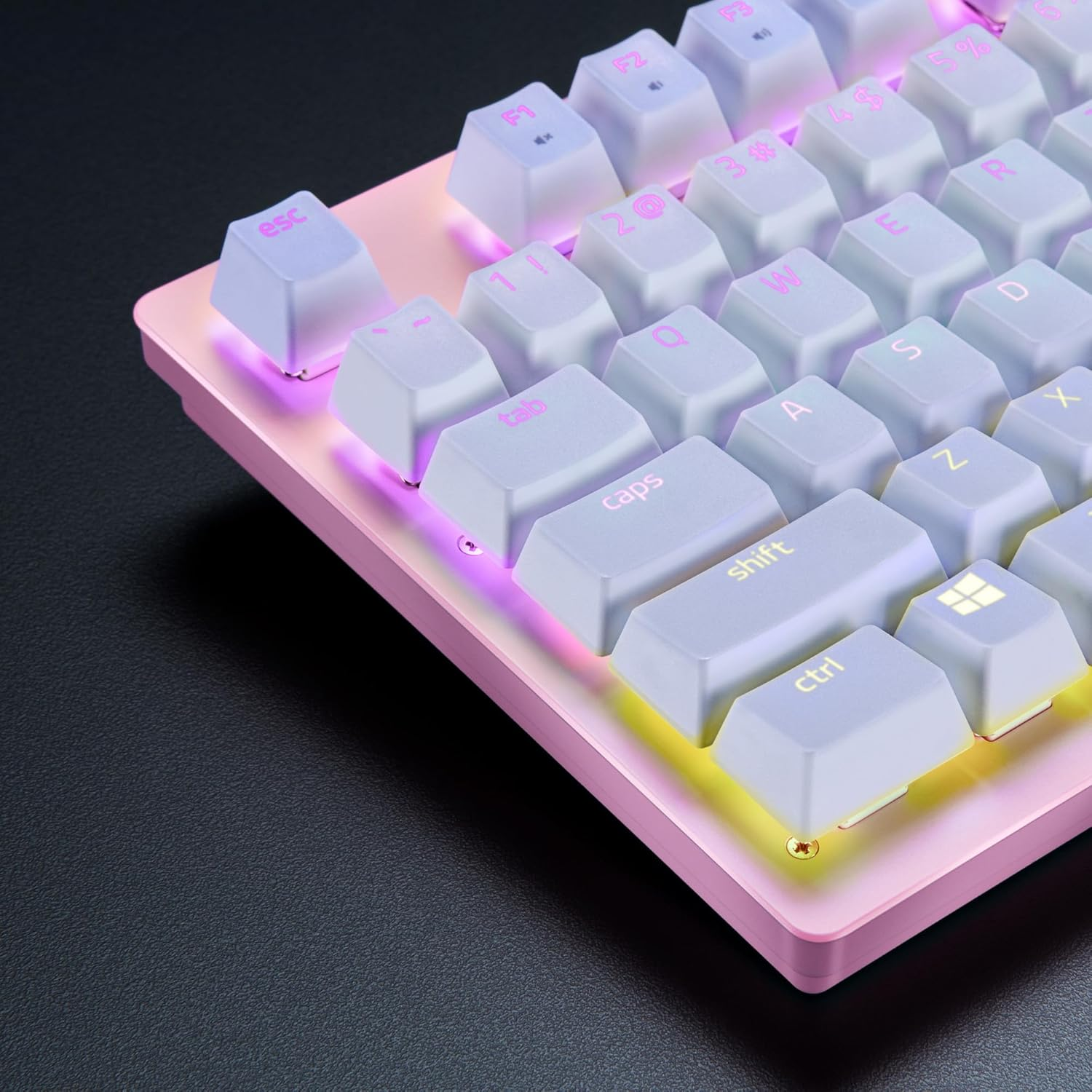 Featuring a doubleshot molding process, each legend is permanently built into the keycap, ensuring fade-resistant characters that remain sharp over time. The thin-font design enables full RGB backlight compatibility, allowing your keyboard lighting to shine through clearly and brilliantly. With extra-thick key walls, every keystroke feels more solid and consistent, enhancing overall typing and gaming performance.