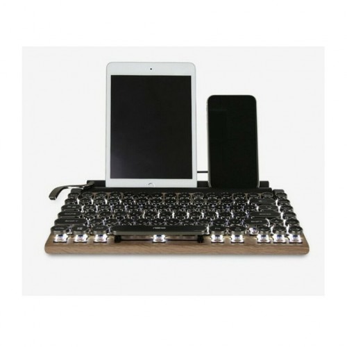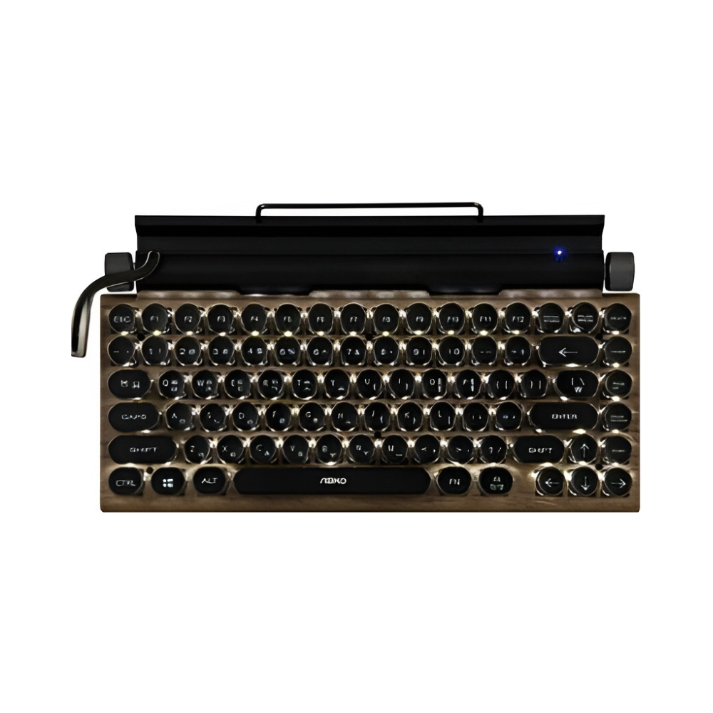 The Retro Mechanical Keyboard TW1867 combines classic mechanical typing with modern wireless convenience. It features **Bluetooth 5.0** connectivity with support for up to **3 devices simultaneously**, making multi-device switching effortless. Compatible with **Windows, iOS, and Android**, it also includes a **tablet mount**, allowing for versatile use. The high-capacity **1000mAh battery** provides up to **8 hours of continuous use**, and its **White LED backlighting** enhances visibility and aesthetics.
