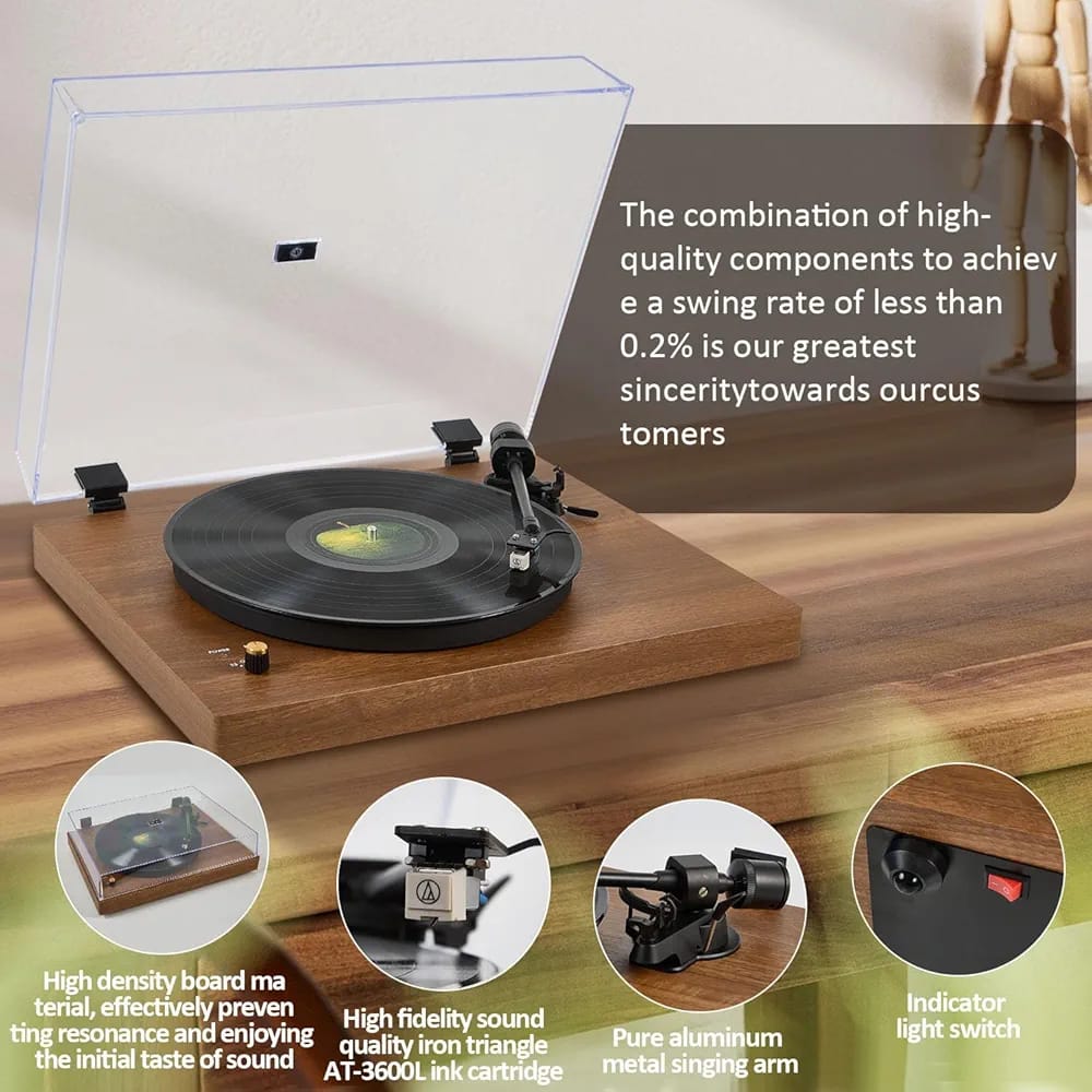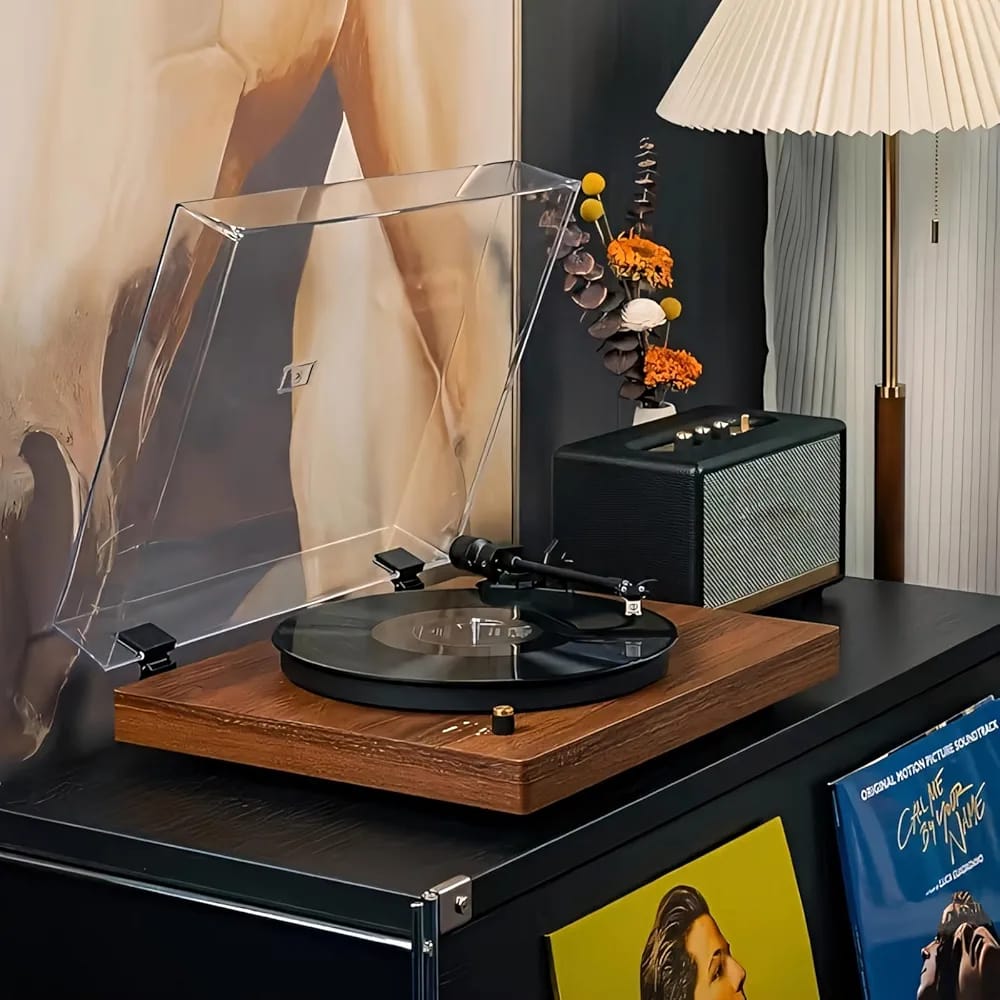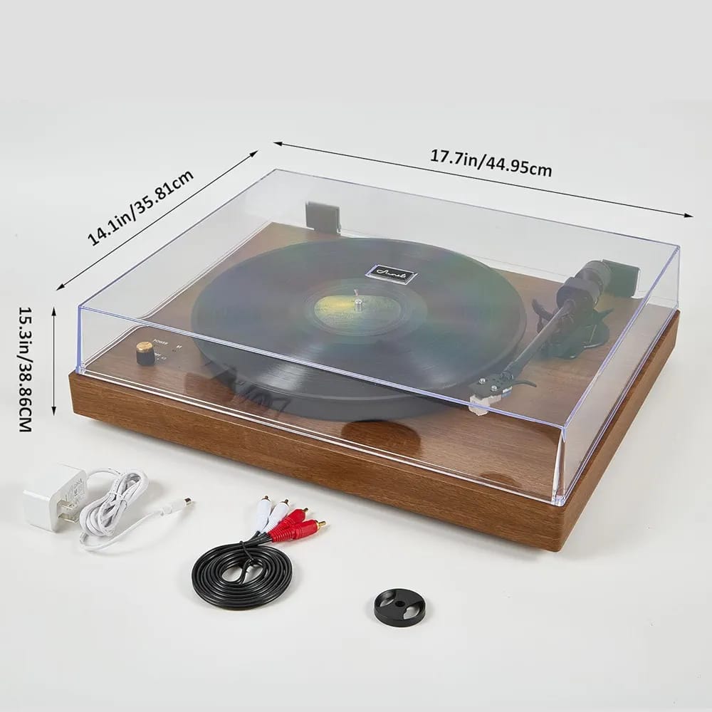 Designed with a classic wood-grain finish and 2-speed belt-drive system, it delivers smooth playback of your favorite 33⅓ and 45 RPM records.
