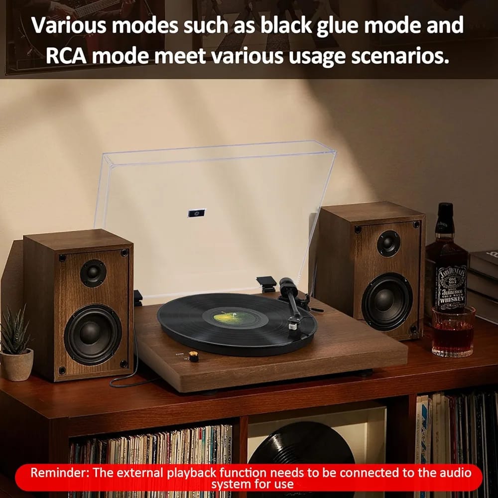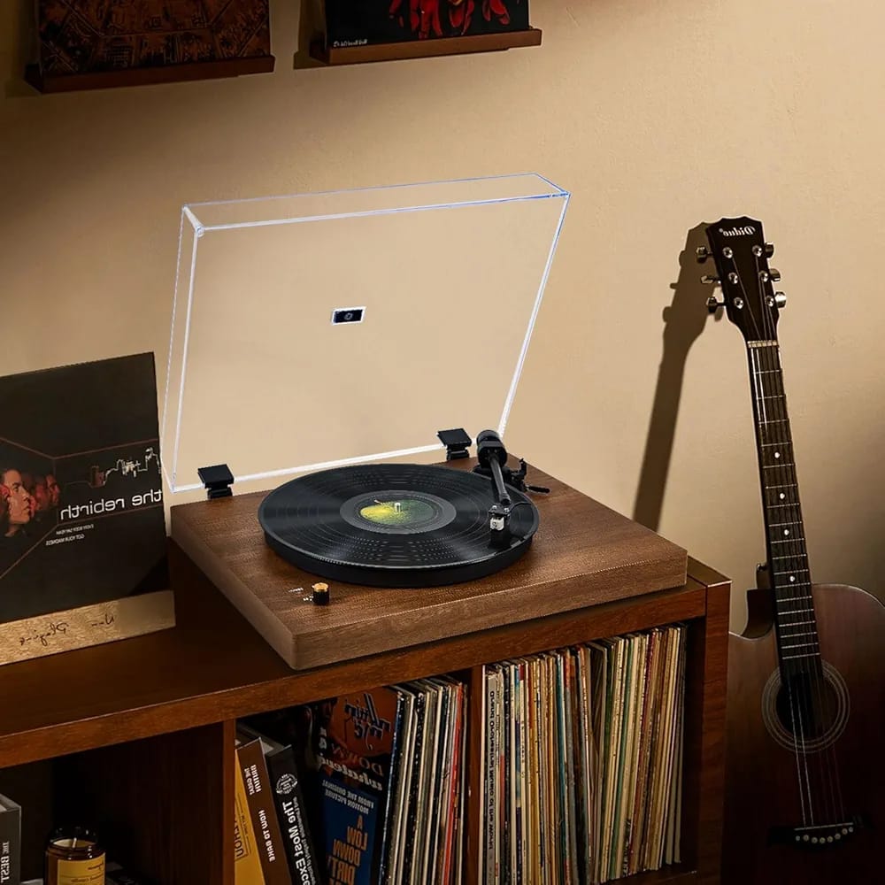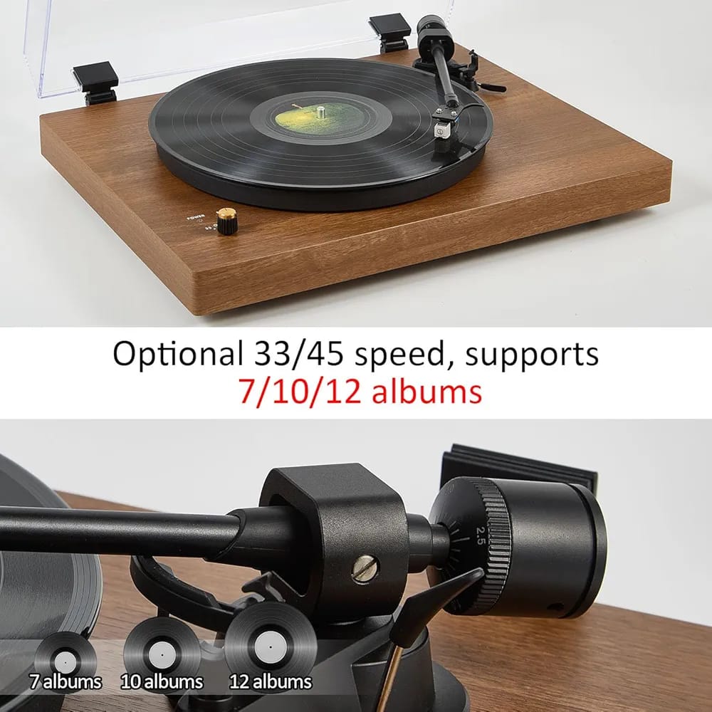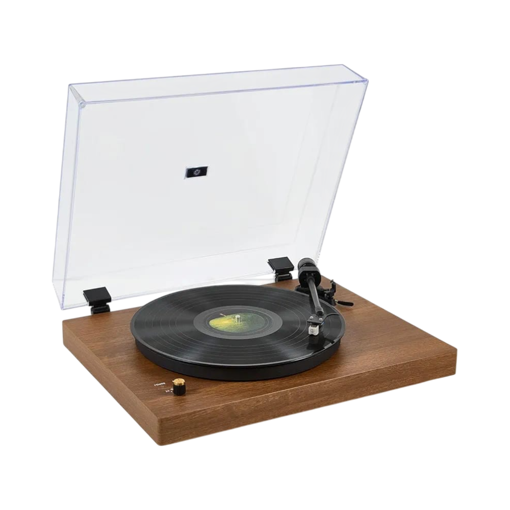 Designed with a classic wood-grain finish and 2-speed belt-drive system, it delivers smooth playback of your favorite 33⅓ and 45 RPM records.