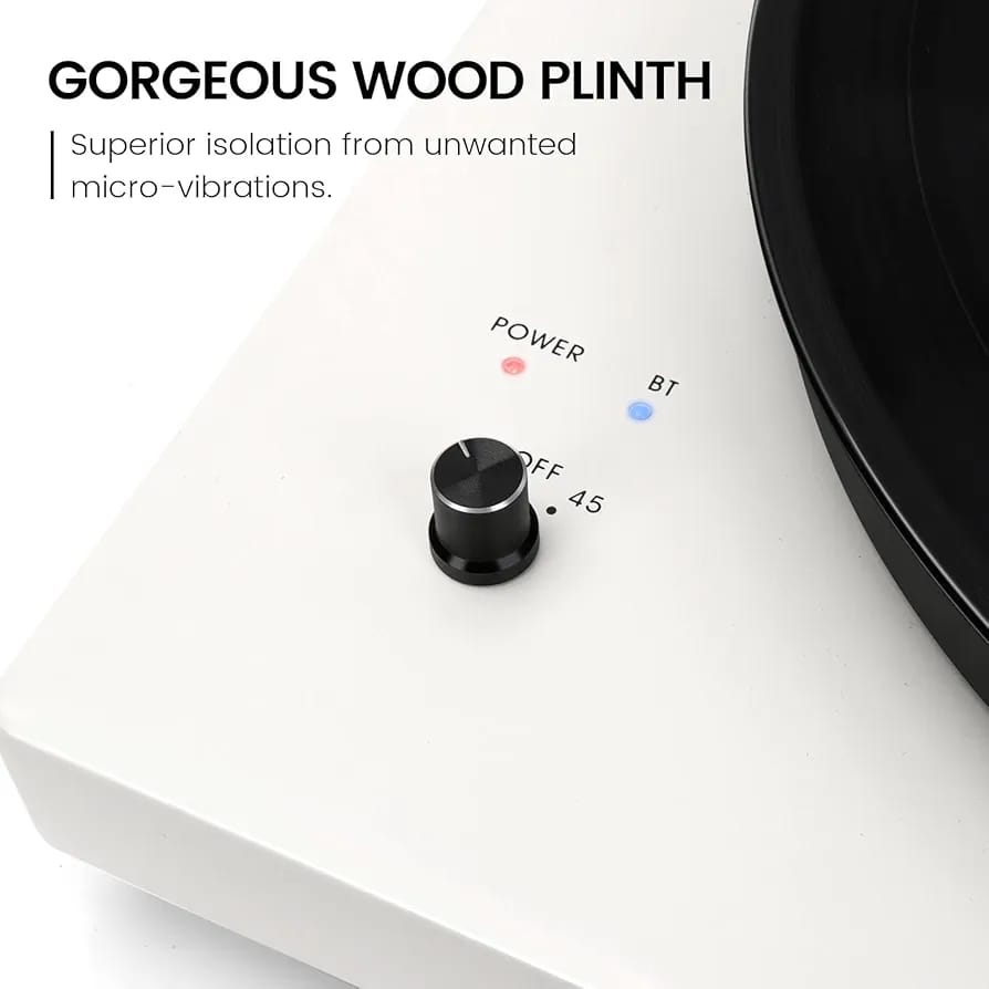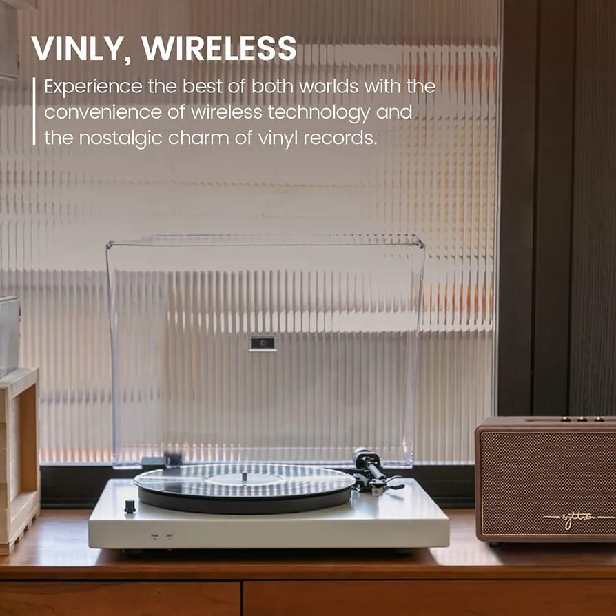 With built-in Bluetooth transmission, users can enjoy cable-free listening through compatible wireless speakers or headphones, while the integrated phono preamp ensures effortless connection to amplifiers, powered speakers, or recording systems via RCA or USB outputs.