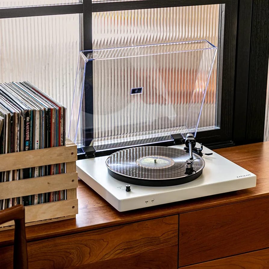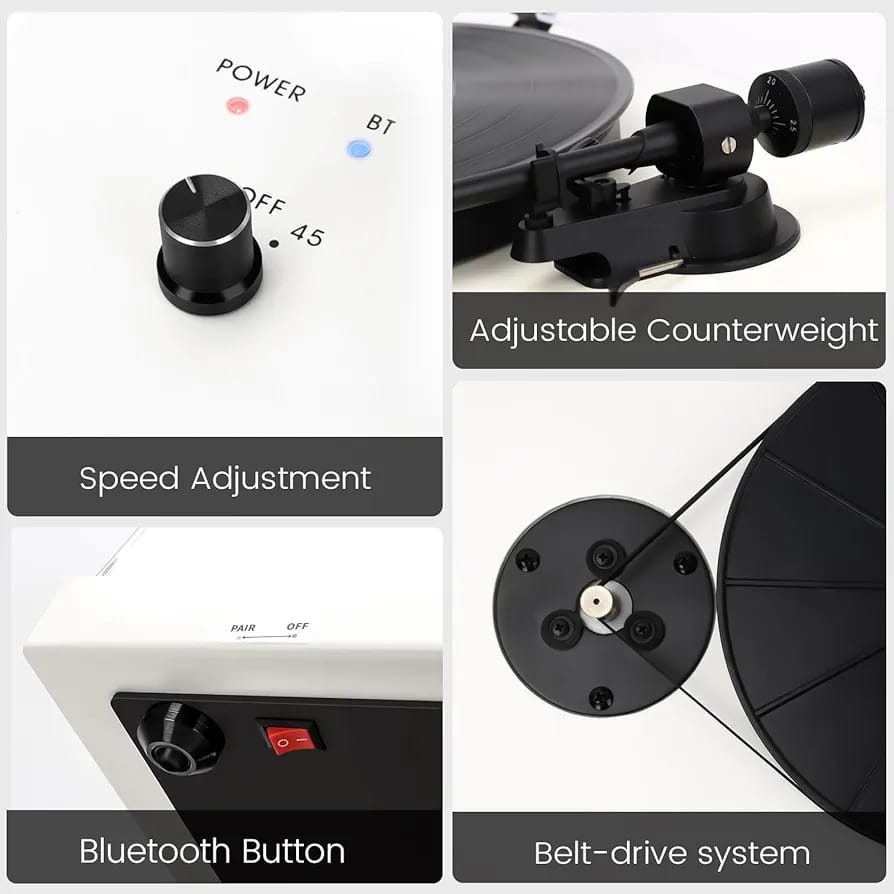 The Katulan Retro Turntable Player Bluetooth (White) combines the warmth of analog vinyl playback with the convenience of modern wireless streaming.
