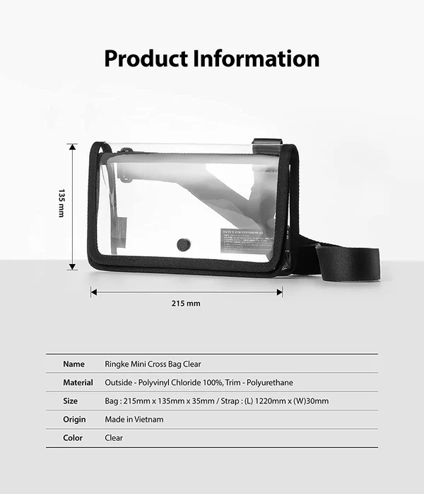 The Ringke Mini Cross Bag (Clear) is a versatile everyday bag designed to be worn over the shoulder or across the body. Compact yet functional, it securely holds essentials such as your smartphone, keys, passport, wallet, portable battery, and more. Ideal for travel, concerts, or sports events, this stadium-approved clear bag ensures quick security checks without compromising style or convenience.