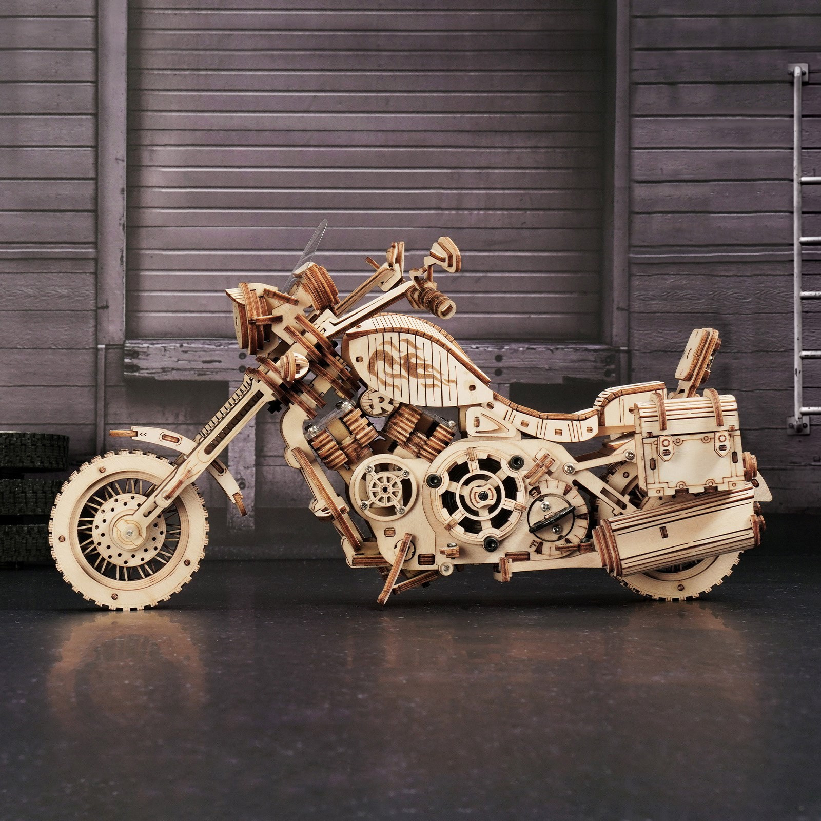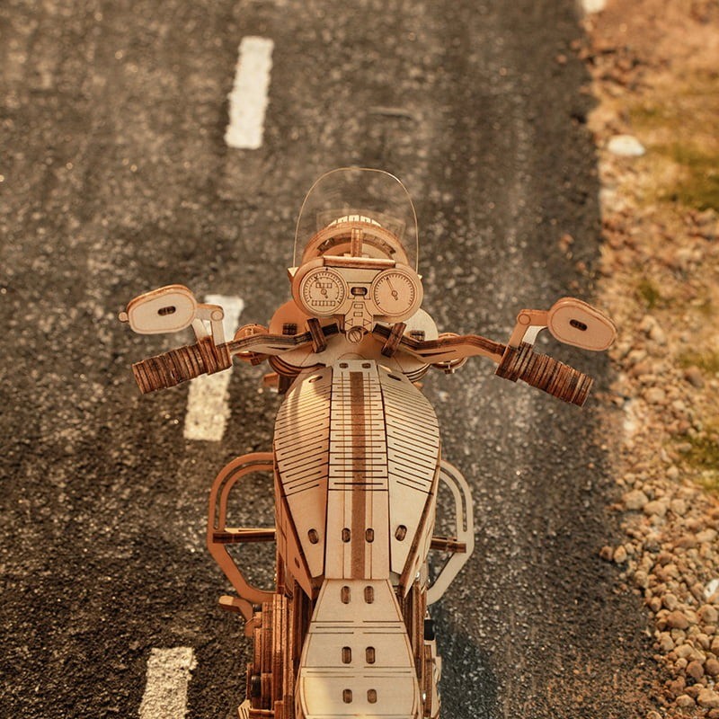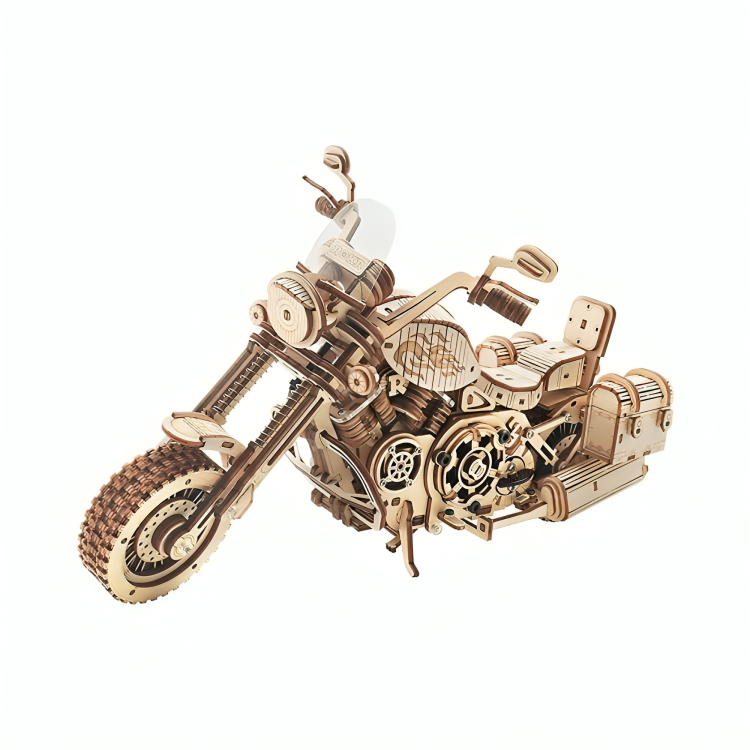 The ROKR Cruiser Motorcycle (LK504) is an intricate DIY mechanical wooden puzzle that lets you build a retro-style cruiser motorbike complete with a functional spring-powered engine. Featuring precision-cut plywood pieces, realistic details, and moving components, this model offers a rewarding hands-on experience and becomes a stunning display piece once assembled — ideal for hobbyists, collectors, and mechanical model enthusiasts.