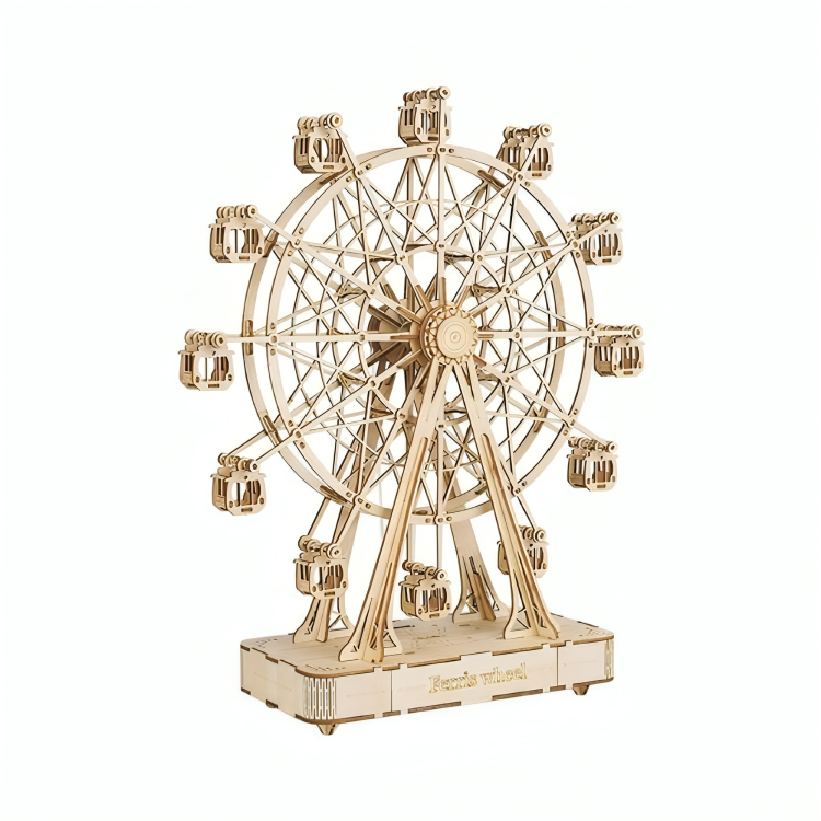 The Rolife DIY Wooden Ferris Wheel (TGN01) is a charming DIY mechanical model that lets you build a fully functional Ferris wheel with a wind-up music box mechanism. Featuring precision laser-cut wooden pieces and delightful rotating motion, this kit offers a relaxing and rewarding crafting experience. Once assembled, it becomes a beautiful kinetic décor piece—perfect for desks, shelves, or as a unique gift for hobbyists and model lovers.