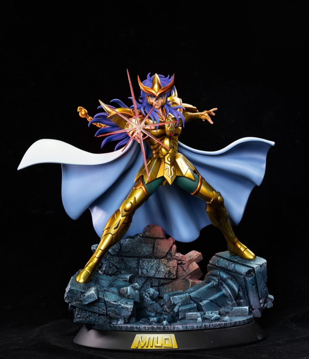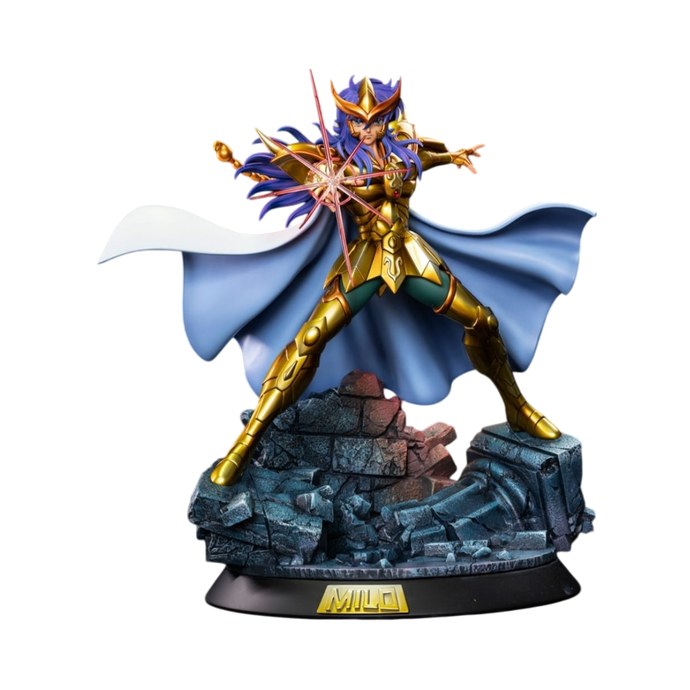 The Saint Seiya – Gold Saint Scorpio Milo Figure is a premium collectible depicting Milo of Scorpio from the iconic anime *Saint Seiya*. Sculpted in dynamic action with his signature Scarlet Needle attack, the statue showcases incredible detail in both pose and costume. Made from high-quality PU/Resin, it is designed for collectors seeking an elegant and striking display piece.