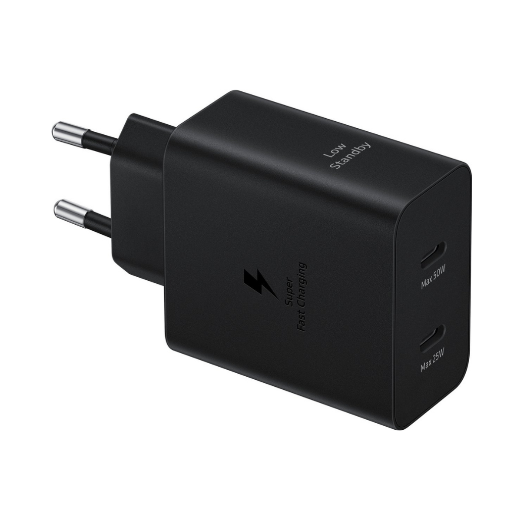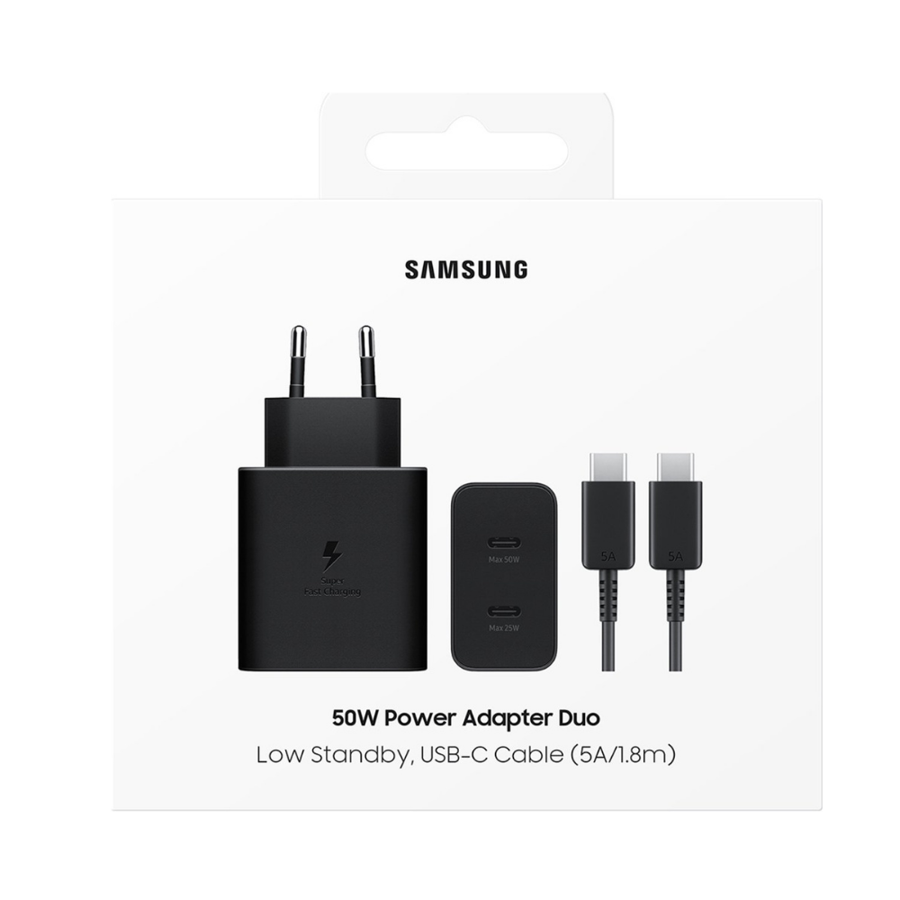 The Samsung Power Adapter Duo USB-C Cable 50W (5A/1.8M) – Black delivers fast, reliable, and efficient charging for a wide range of Samsung Galaxy smartphones, tablets, and other USB-C compatible devices. With dual USB-C ports and up to 50W of total output, it’s perfect for powering two devices at once while maintaining quick charging speeds. The included 5A USB-C cable ensures stable, high-power delivery for maximum performance.