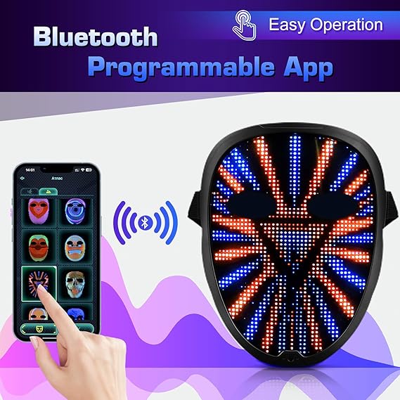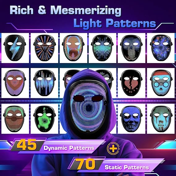 Designed for comfort, the mask features soft inner padding, an adjustable head strap, and a secure fit for most face shapes. The intuitive app lets you choose preset modes, create custom colour sequences, and set timers — all from your phone.
