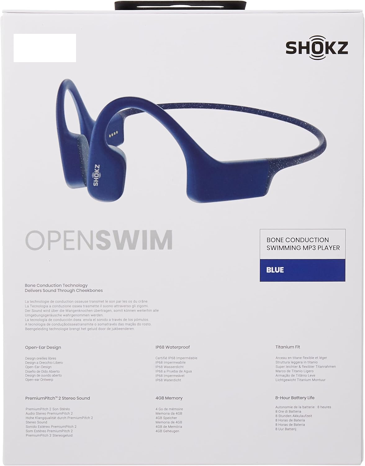 The Shokz OpenSwim Waterproof Air Bone Conduction Wireless Bluetooth Headphones (Blue, S700-BL) are engineered for active lifestyles, especially swimmers and water sport enthusiasts. Using bone conduction technology, they deliver clear audio without blocking your ears — perfect for staying aware of your surroundings while enjoying music, podcasts, or calls. Fully waterproof and designed for comfort, these headphones provide reliable sound both in and out of the water.
