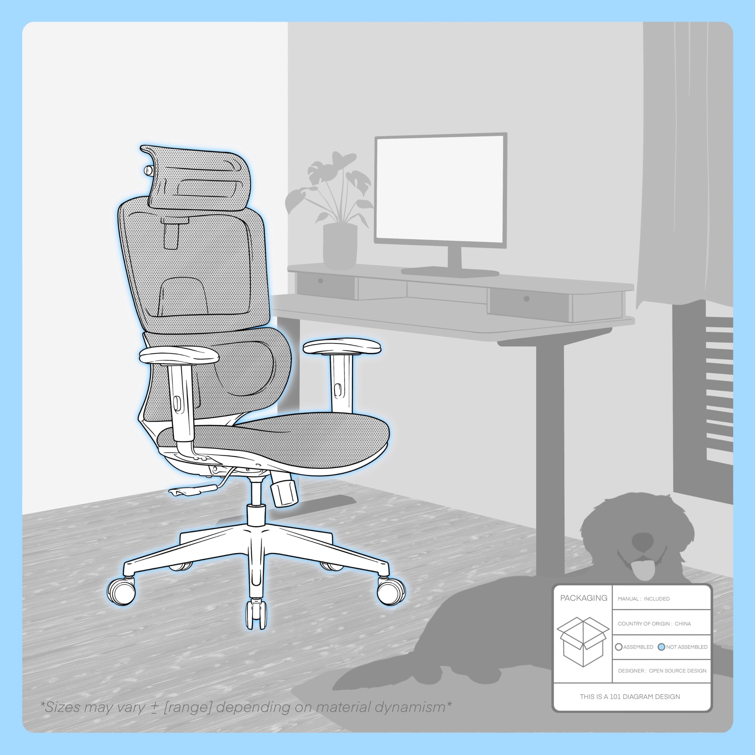 The SIHOO M105C-101-JT is a breathable, ergonomically designed office chair built for long-term comfort and resilient performance. It features a dual-layer mesh headrest and backrest made from durable PA fiber for spine-following support and enhanced ventilation. The shaped sponge seat mounted on a quality wooden panel offers comfortable cushioning, while an adjustable mechanism and liftable headrest (1D/2D depending on adjustment) let users fine-tune posture. High-quality SGS-approved gas spring, smooth PA+PU castors, and a robust PA chair leg tested to 1000 kg pressure complete the durable construction. A linked footrest provides added comfort when reclining.