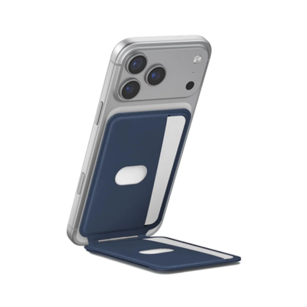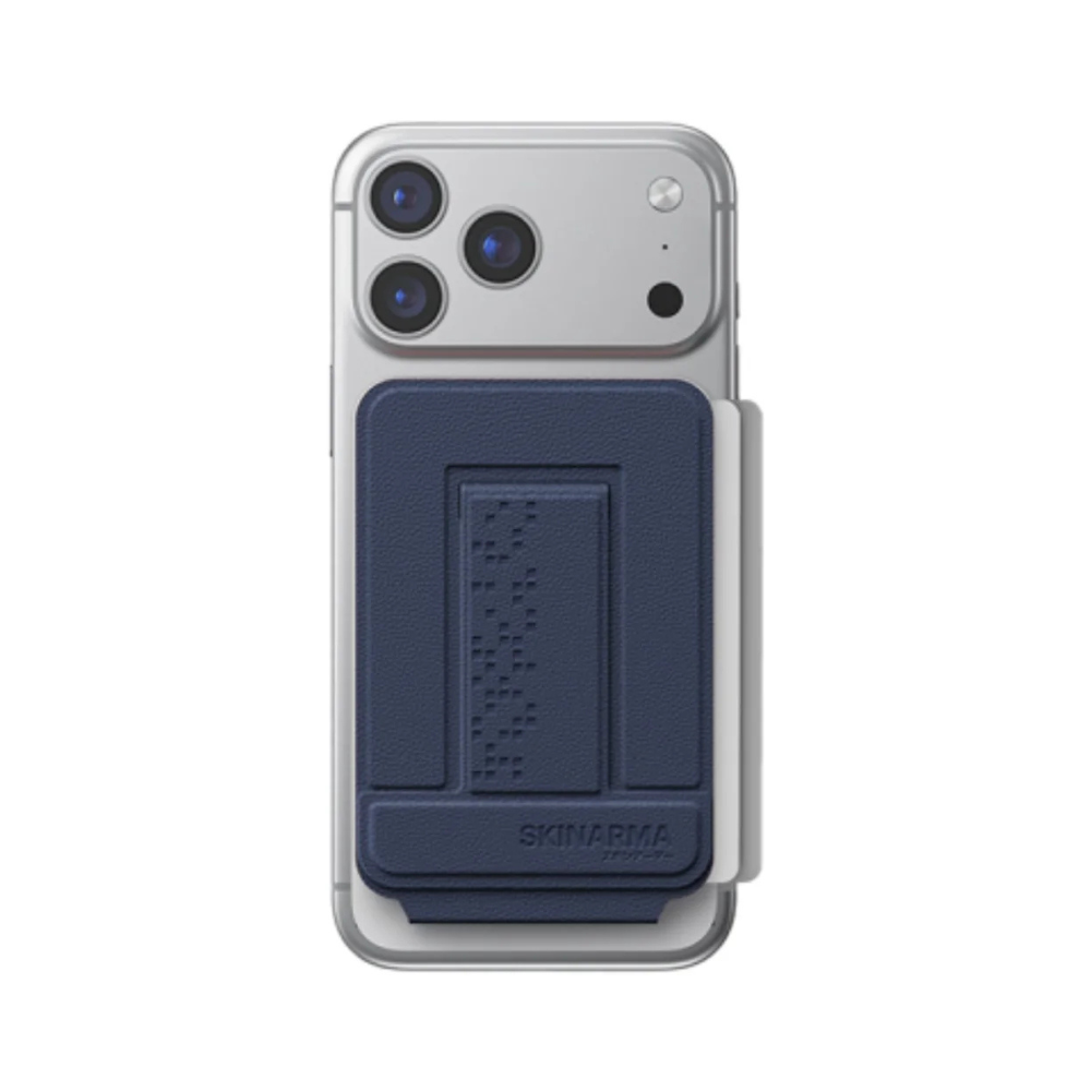 The Skinarma Axis Magnetic Foldable Tripod with Card Holder is a versatile 2-in-1 accessory that combines a foldable tripod and an RFID-protected card holder, designed for seamless use with Mag-Charge devices. Its magnetic snap-on alignment works perfectly with MagSafe-supported car mounts, providing secure attachment while allowing easy wireless charging. The adjustable tripod stand supports both portrait and landscape viewing, making it ideal for video calls, streaming, or hands-free content creation. Crafted with a leatherette finish and reinforced stitching, this slim, lightweight, and pocket-friendly accessory offers both style and durability. It can hold up to 2 cards safely while remaining detachable for convenience.