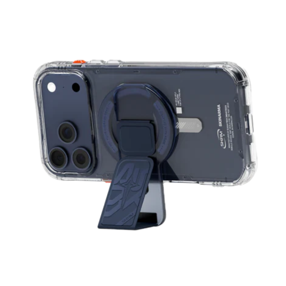 The Skinarma Phaze Arch XE Magnetic Grip-Stand (Blue) is a sleek and functional accessory designed to enhance everyday smartphone handling and viewing convenience. Engineered with a full-length grip design, it provides a secure and comfortable hold, reducing the risk of drops during one-handed use. The magnetic snap-on design allows effortless attachment and removal, while the dual-magnet system ensures strong compatibility with magnetic car mounts. Whether you’re watching videos, video calling, or navigating on the go, the Phaze Arch XE supports both portrait and landscape orientations for truly hands-free versatility. Finished in a bold blue tone, it adds a striking, modern accent to your device.