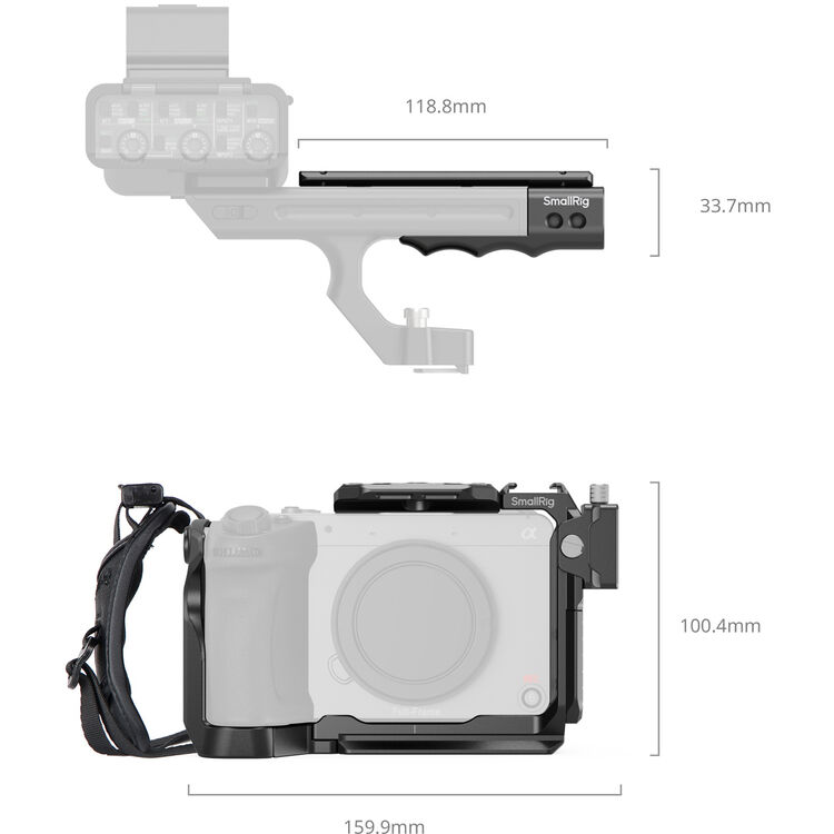 Full Camera Cage for Sony FX2 XLR Handle Extension Rig Detachable Top Plate NATO Rails, Cold Shoe Mount Multiple 1/4″-20 and 3/8″-16 Threads Arca-Type Quick Release Plate HDMI Cable Clamp