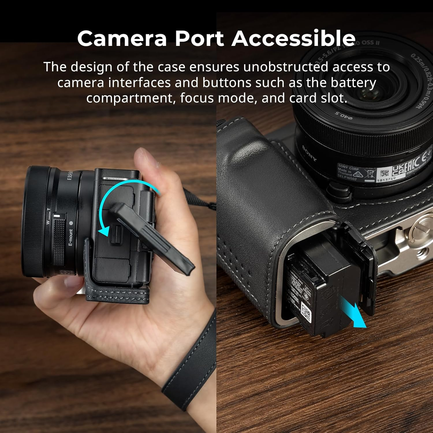 Protect your camera in style — premium leather design with enhanced grip and easy handling.
