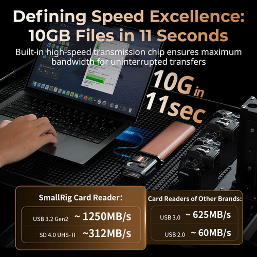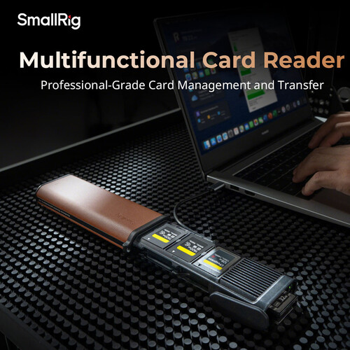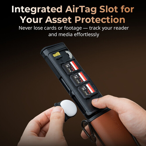 The SmallRig CFexpress Type A Multifunctional Card Reader and Storage Case combines high-speed data transfer with organized storage for all your memory cards. Compatible with CFexpress Type A, SD, and microSD cards, it can read and store multiple cards simultaneously while keeping them protected. The integrated USB-C 3.2 Gen 2 cable enables data transfer up to 1250 MB/s, while the USB-C power port allows pass-through charging. An Apple AirTag slot, aluminum heatsink, and durable design make it ideal for photographers and videographers on the go. This product comes with a 1 Year Warranty for added peace of mind.