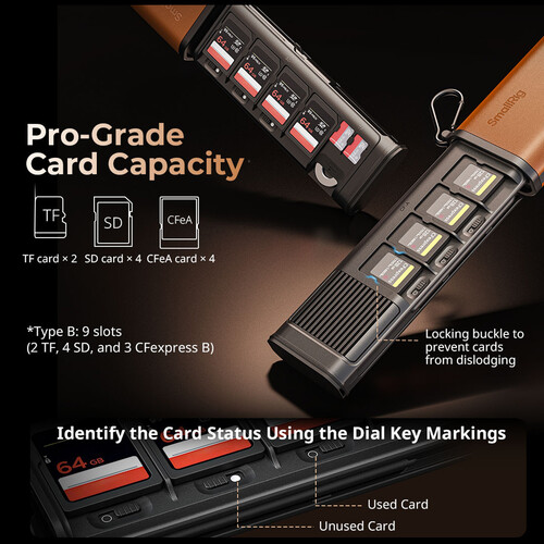 | Storage Capacity | Holds 4 CFexpress Type A, 4 SD, and 2 microSD cards |
