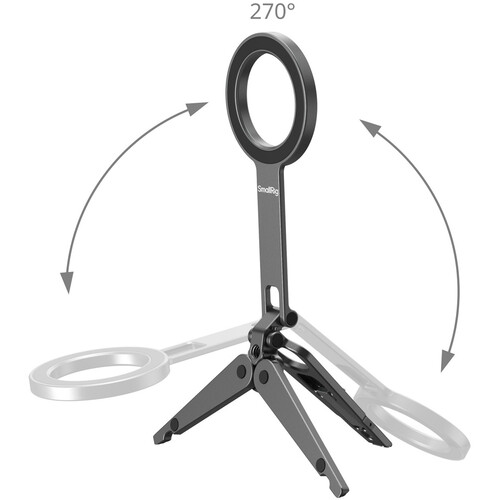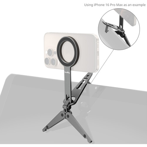 The SmallRig Magnetic Smartphone Tripod & Monitor Mount offers flexible support for mobile photography, video calls, live streaming, and content creation. Featuring a dual-sided magnetic phone mount and tripod legs, it can be used on flat surfaces or clipped to a monitor with its built-in hook. The mount allows up to 270° tilt and is MagSafe compatible, while nonslip silicone feet and a travel-friendly fold-flat design ensure stability and portability for any setup.