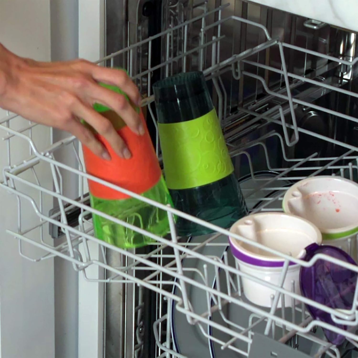 Design FeaturesSpill-proof, hinged flip-top lid, built-in straw