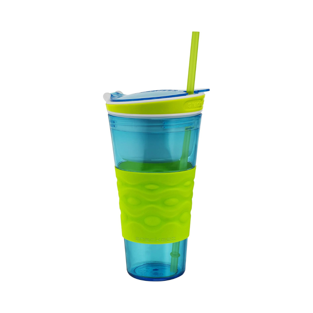 Snackeez Travel Snack & Drink Cup with Straw – Blue, 16 oz