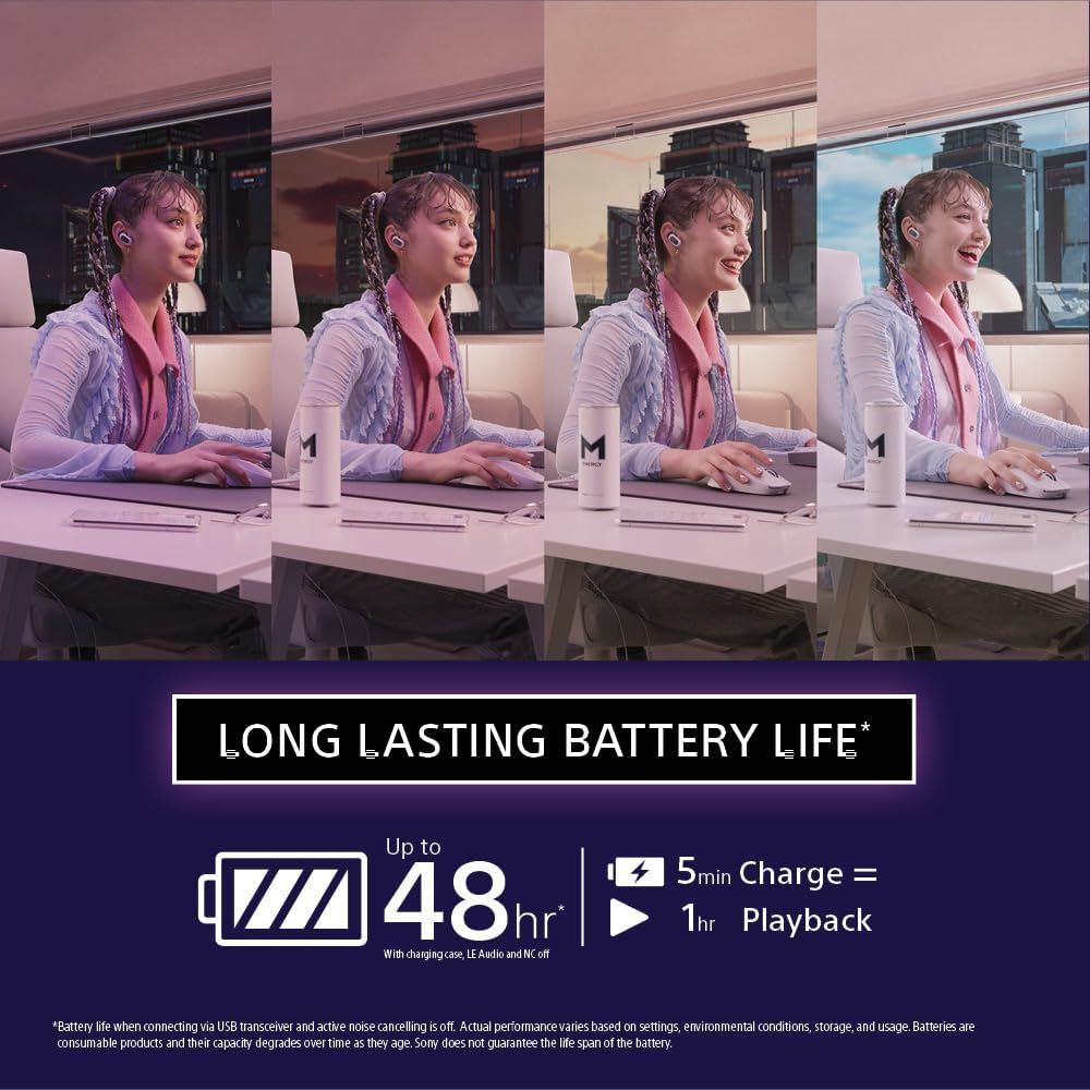 | Wireless Connectivity | 2.4 GHz wireless via USB-C dongle; Bluetooth LE Audio (LC3) |