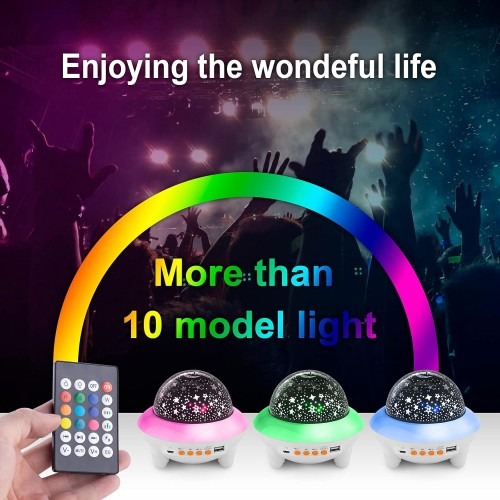 The Starry Sky Projector with Bluetooth Audio (Random Colours) is a multifunctional night light designed to transform your space with immersive lighting and sound. With more than 10 lighting modes, dynamic starry sky projection, and built-in Bluetooth audio, it creates the perfect atmosphere for relaxation, parties, or bedtime. The included remote control allows you to adjust colors, brightness, and rotation effects from a distance. Compact and rechargeable, it offers up to 4 hours of continuous use on a single charge, making it both convenient and energy-efficient.