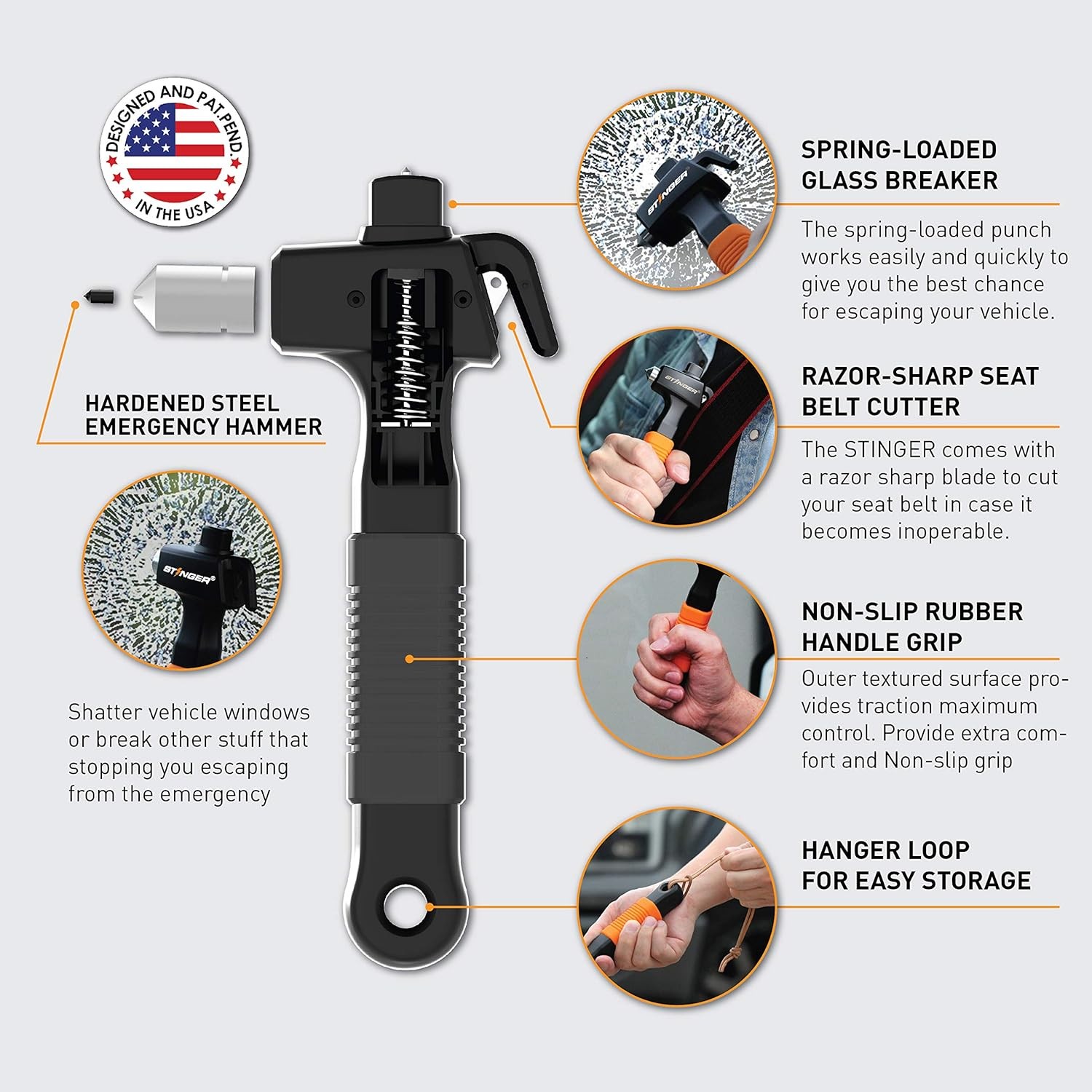 The Stinger 3-in-1 Super Duty Car Safety Escape Tool is an essential emergency accessory designed to help you stay safe during unexpected road incidents. Combining a seatbelt cutter, a glass breaker, and an emergency flashlight in one durable body, it ensures quick action when seconds count. Compact and easy to store, it’s ideal for keeping in your glove box or attached to your car’s interior for immediate access.