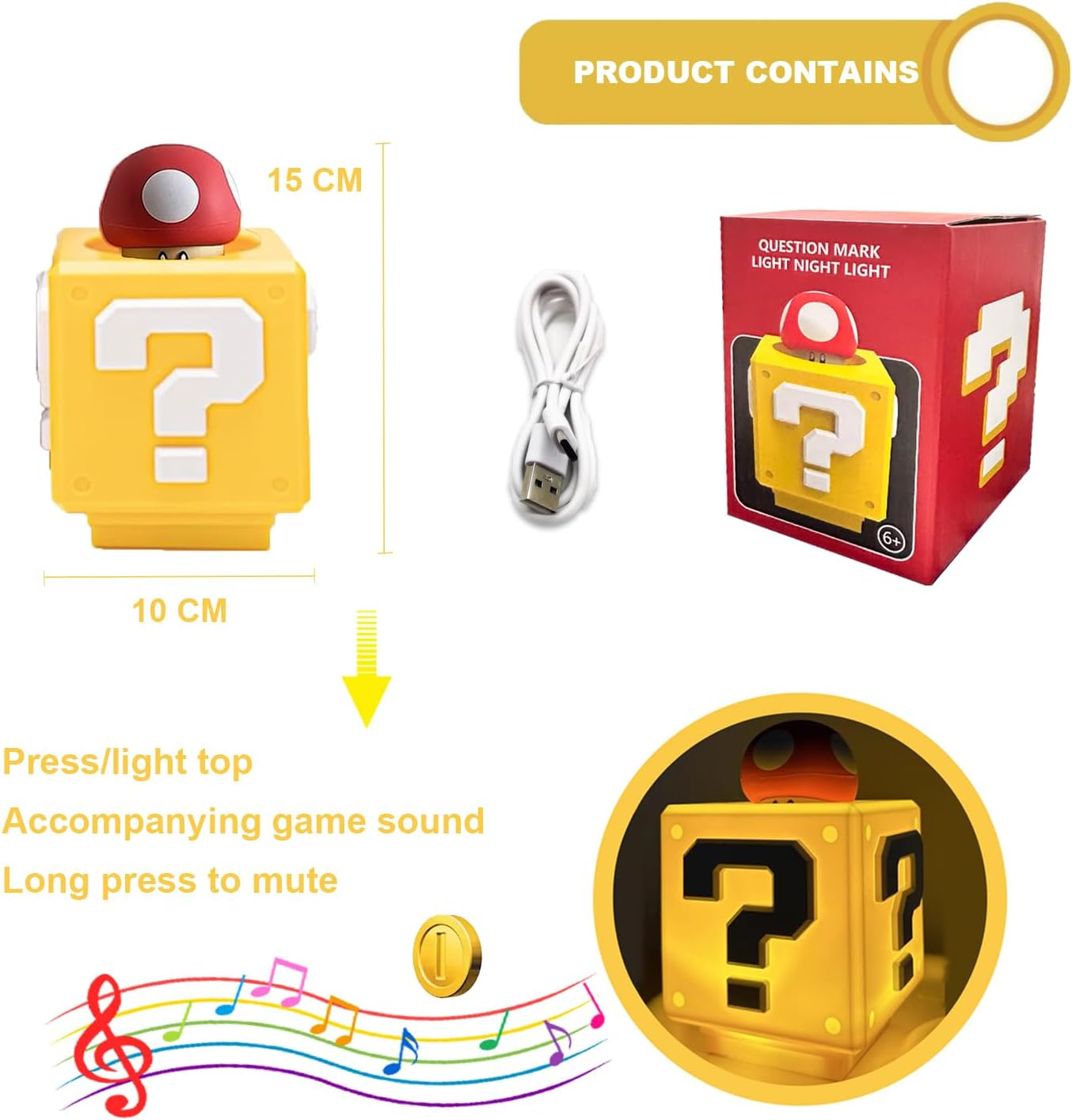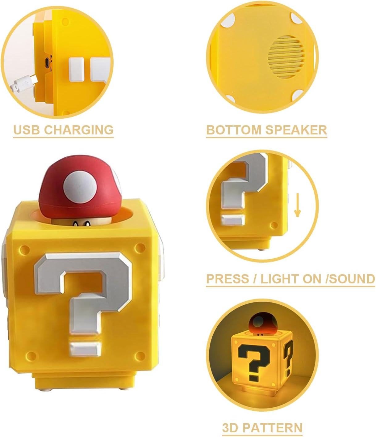The Super Mario – Question Block Night Light brings the iconic world of Super Mario straight into your room with fun visuals, nostalgic sound effects, and soft ambient lighting. Designed in the classic Question Block style, this night light is made from high-quality plastic and uses gentle LED lighting that’s easy on the eyes—perfect for bedrooms, gaming rooms, or kids’ spaces.