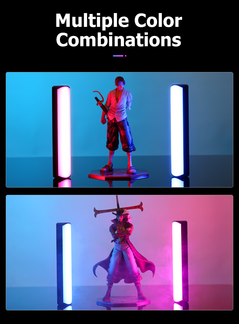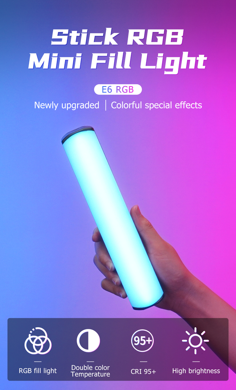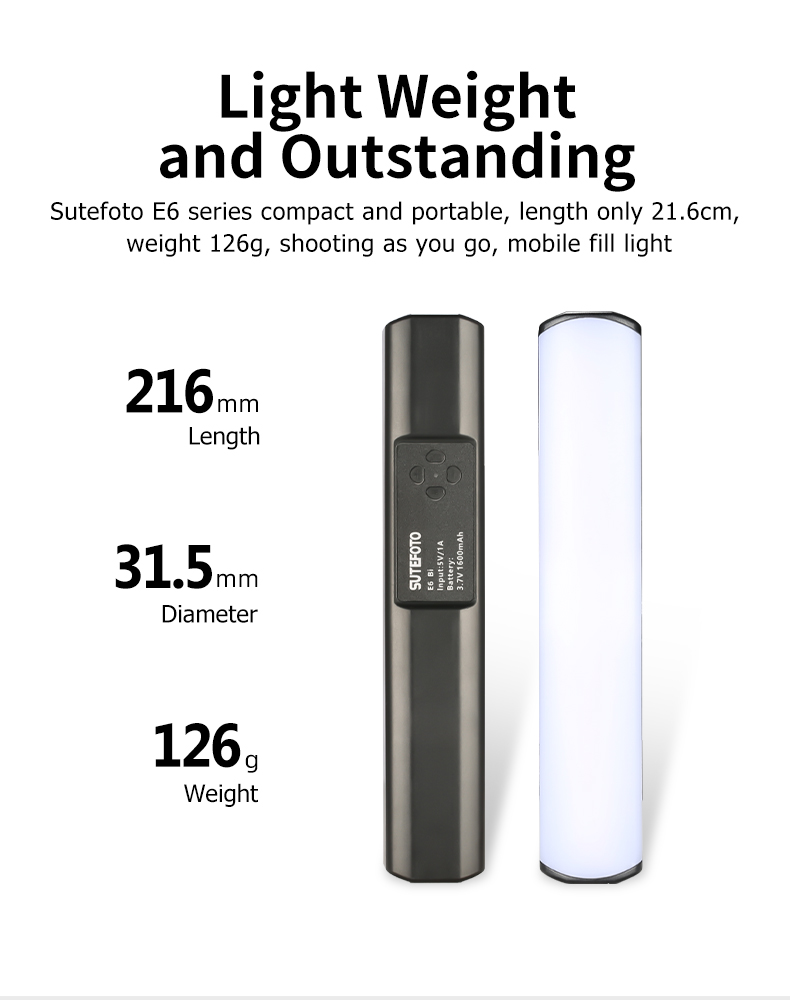 Small size and strong brightness with 21.6cm size and 88 enhanced LED lamp beads. 32 cold lights + 32 warm lights + 24 enhanced RGB LED lamp beads, CCT mode supports 2800K-10000K wide color temperature adjustment; Support RGBCW Mode / HSI Full Color Mode / FX Special Effect Mode / CCT Mode Three light effect modes – Hue, Brightness and Saturation.