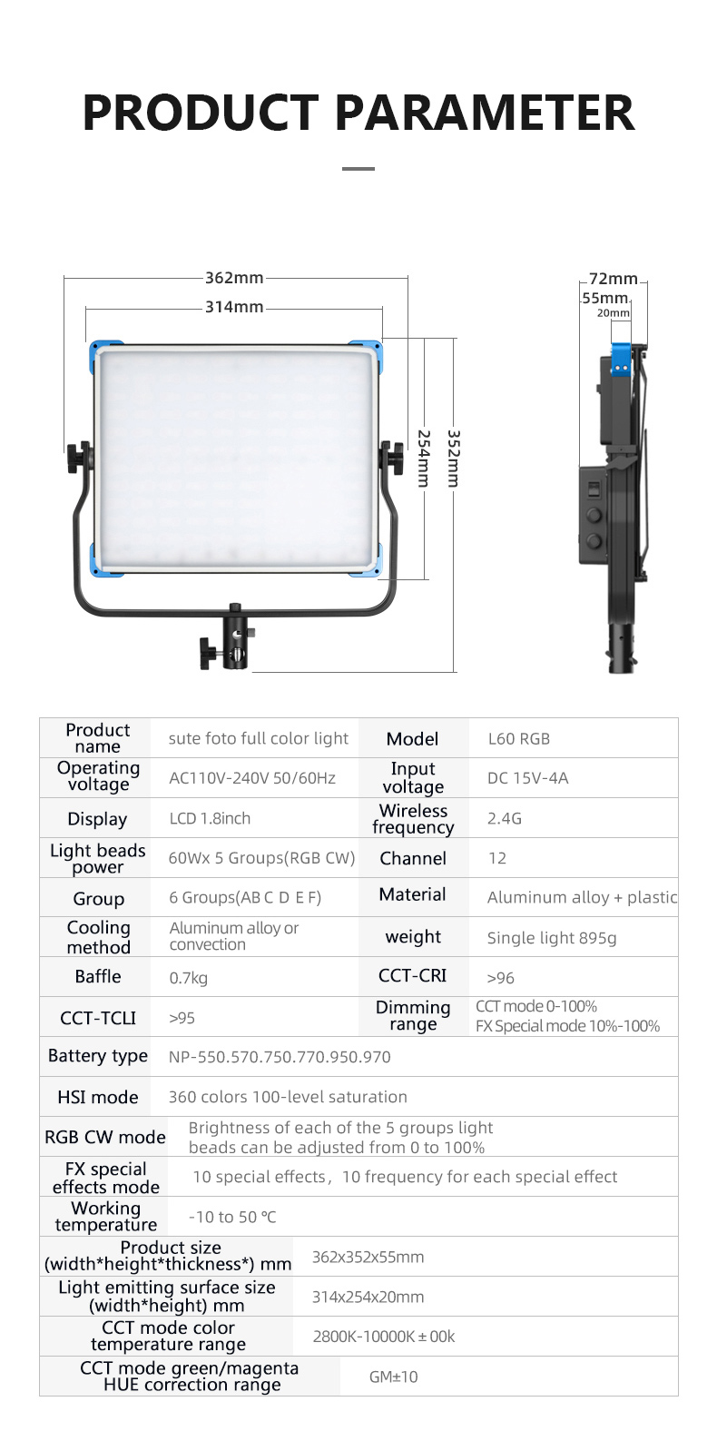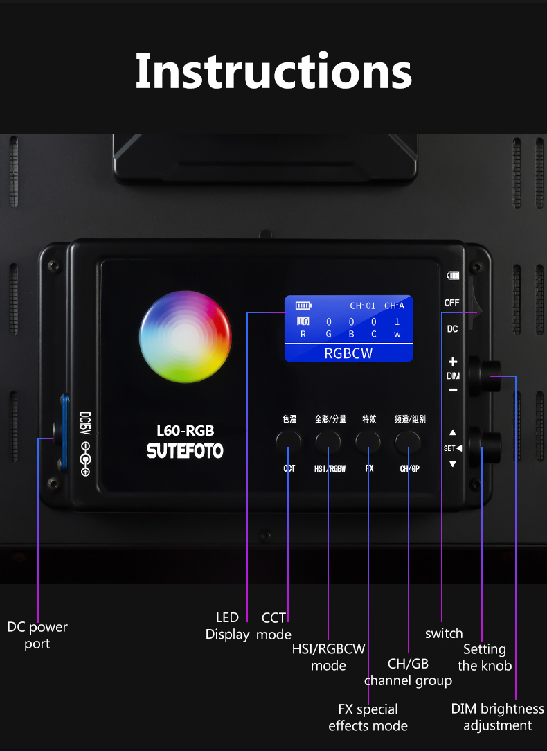 Sutefoto L60 RGB Panel LED