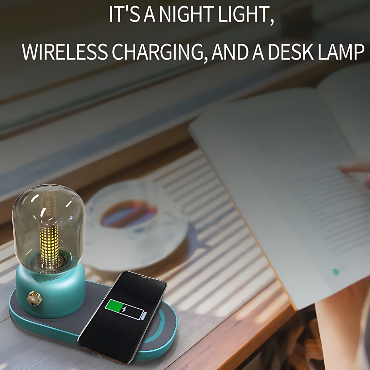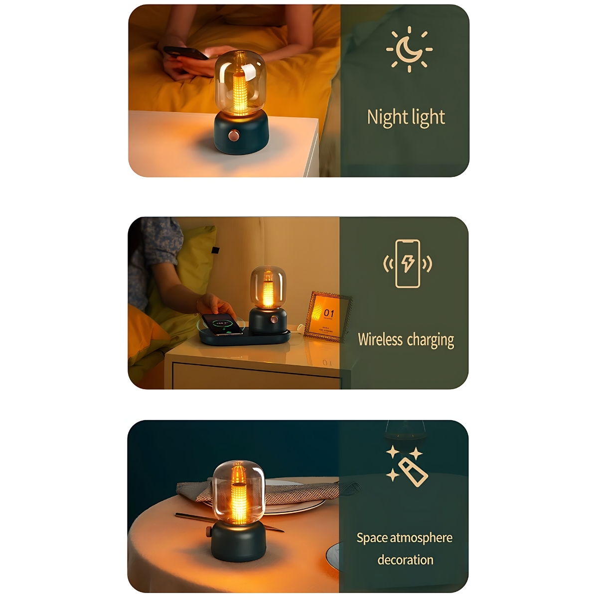 Introducing the Table Lamp with Wireless Charger, a stylish addition to your home decor. This corded electric lamp combines retro style with modern functionality, featuring step-less dimming and a split design. With overcharge and short circuit protection, it provides a safe and convenient way to illuminate your space while wirelessly charging your devices.
