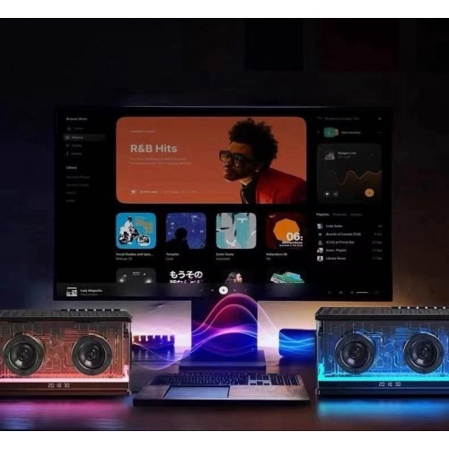 The Tabletop Bluetooth Speaker JY‑26 (20490501630) is an all-in-one audio powerhouse that combines high-fidelity sound, striking lighting effects, and industrial design. With a **40W high-power 2.1‑channel system** (20W woofer + two 10W tweeters + dual sub‑diaphragm), this speaker delivers deep, rich bass and crystal-clear highs. Its **splendid Ambilight-style lighting** offers three color options — blue, yellow, and purple — to create dynamic mood lighting while you play music.