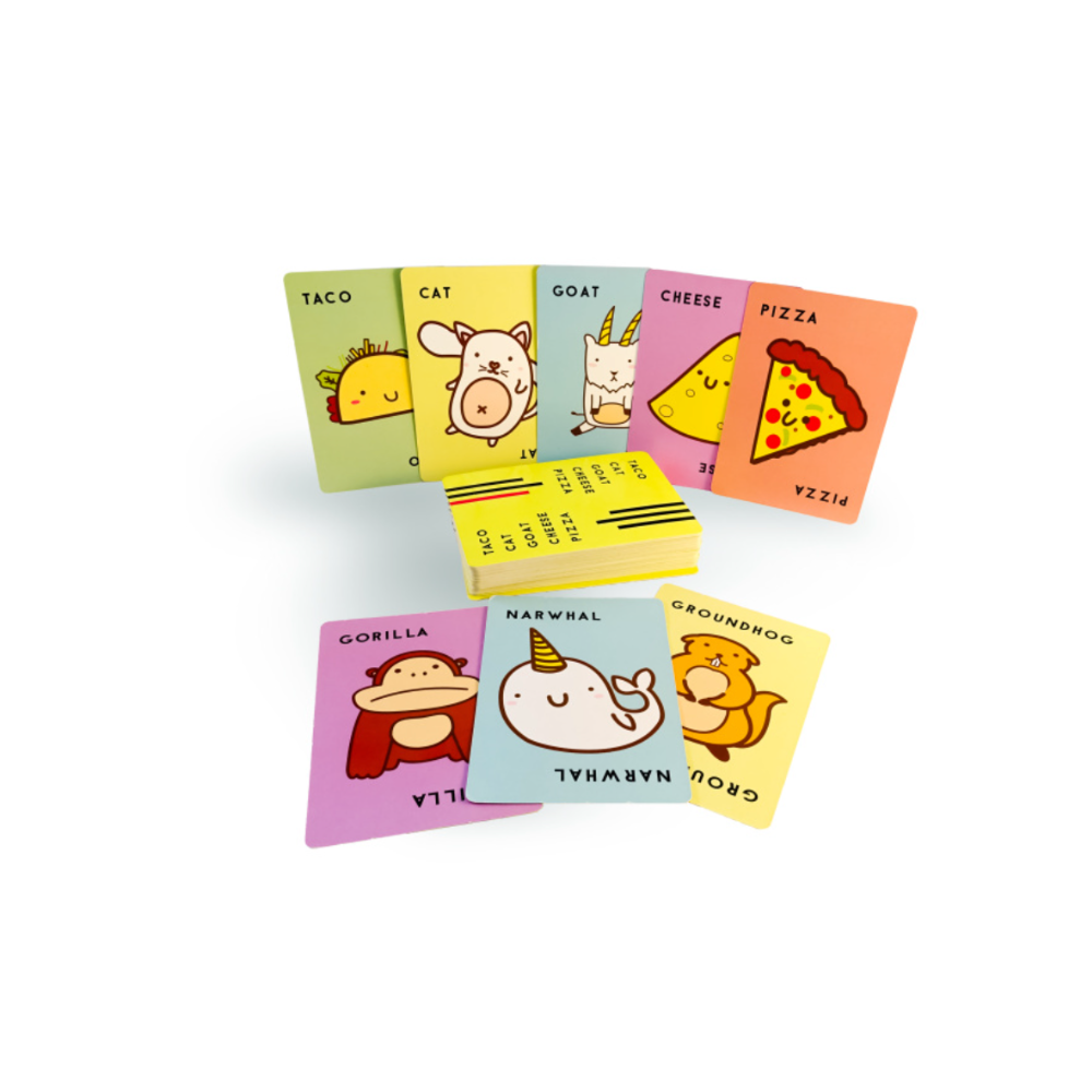The Taco Cat Goat Cheese Pizza Card Game is a fast-paced, hilarious party card game that tests your reflexes and memory. Players race to match cards with the spoken word, slapping the pile at just the right moment — the result is chaotic fun and nonstop laughter!