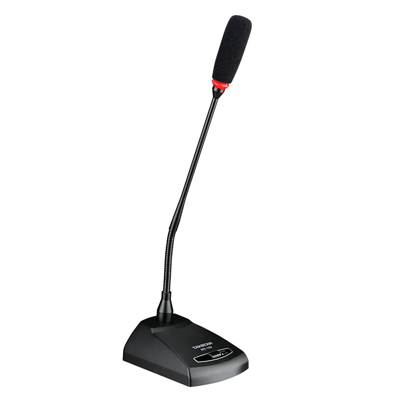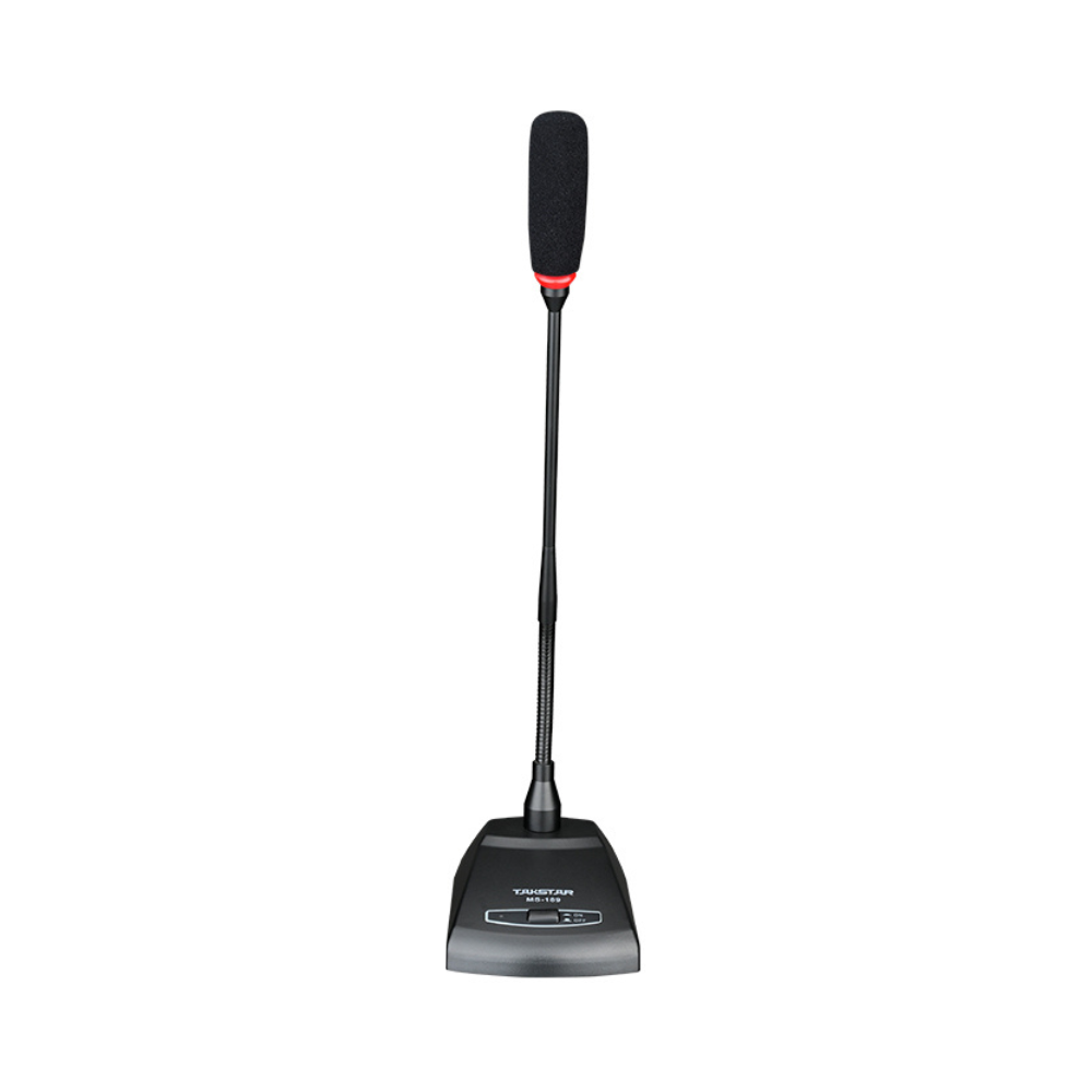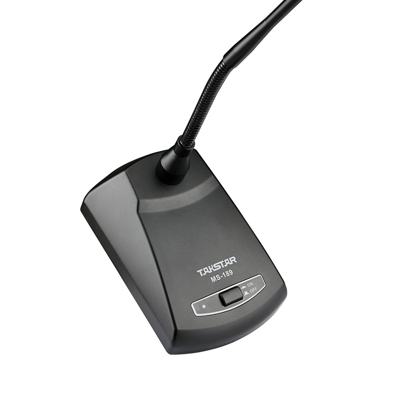 The TAKSTAR MS-189 is a wired table‑top conference/gooseneck microphone built for meetings, conferences, speeches, broadcasting, and public address. It offers clear, bright vocal pickup with a back‑electret condenser capsule and a unidirectional pickup pattern, reducing background noise and focusing on the speaker. The base features a tactile on/off switch with LED indicator, so speakers know when the mic is live. Power can be supplied either via phantom power or standard AA batteries — making it versatile for different environments.