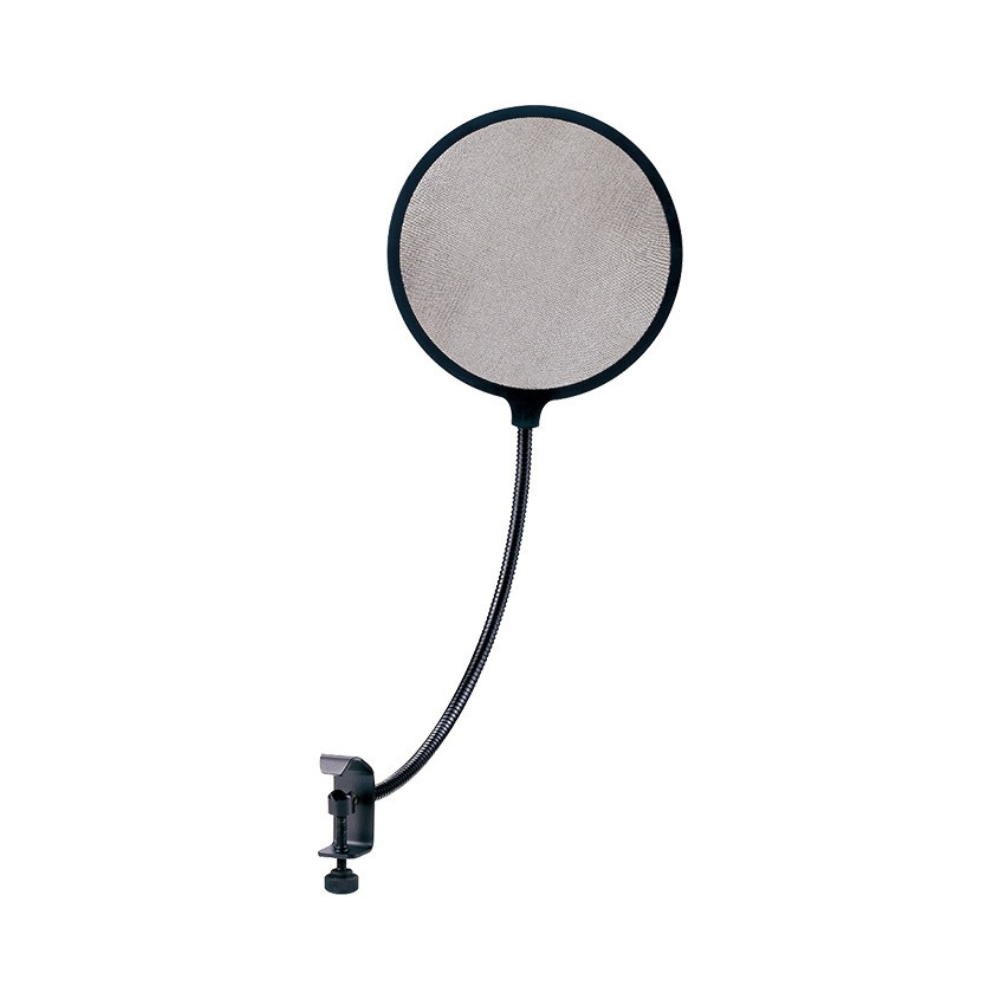 The TAKSTAR PS‑1 is a pop‑screen / wind‑noise filter designed to reduce “popping” sounds (like from plosive consonants such as “P”, “B”, “T”, “D”) and airflow‑induced noise when speaking or singing close to a microphone. It helps deliver clearer vocals and cleaner recordings — essential for studio recording, voice‑overs, streaming, broadcasting, or any situation where vocal clarity matters. The PS‑1 mounts easily to most microphone stands or booms via a clamp, and its flexible gooseneck allows precise positioning in front of the mic.