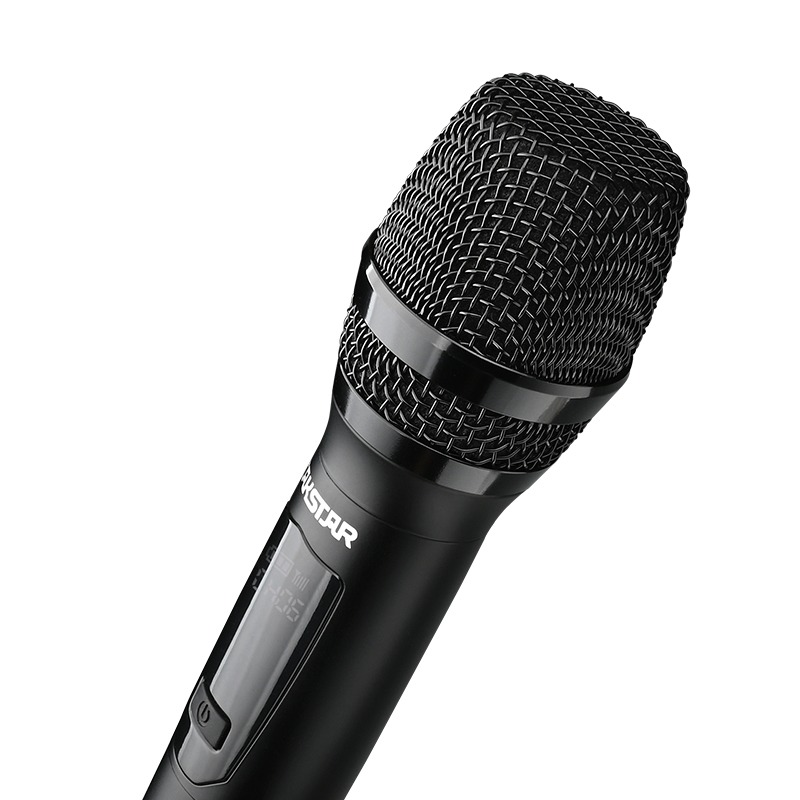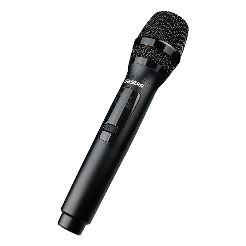 The TS‑K201 is a portable handheld wireless microphone designed for karaoke, live streaming, speeches, and small events. It uses UHF wireless technology for interference-free operation and includes a compact receiver that connects to amplifiers or speakers. The built-in LED display shows frequency, battery level, and signal status. A one-button mute function allows quick control, and up to 50 selectable channels enable multiple microphones to operate simultaneously.